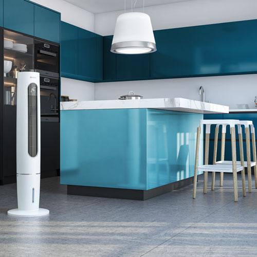 Der Olimpia Splendid Aircooler Peler Tower ist nicht nur ein Standard-Lüfter, sondern ein Super-Luftkühler mit fortschrittlicher Technologie, der mit kaltem Wasser gespeist wird. Kühlen Sie einen Raum auf natürliche Weise! Der Luftkühler Olimpia Splendid Peler Tower sorgt dank Wasserkühlung und 360° drehbarem Auslass und seinem speziellen Belüftungssystem für natürliche Kühlung mit angenehmer Frische. Geeignet zur Erfrischung in Räumen bis 15 m².