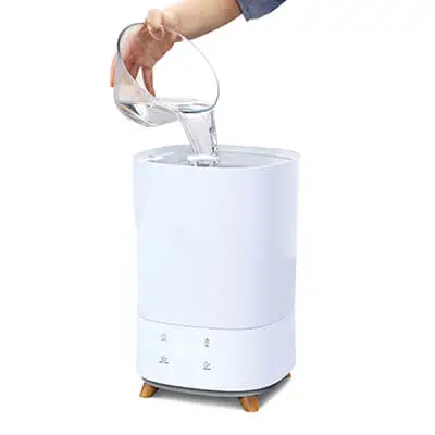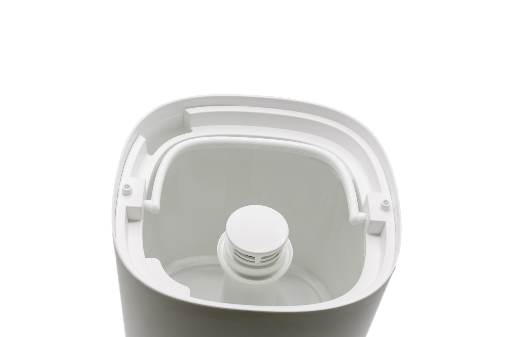 Air & Me SOLNAN Ultraschall Luftbefeuchter macht das Befeuchten Ihrer Luft zum Kinderspiel Air & Me SOLNAN Ultraschall Luftbefeuchter überzeugt durch sein elegantes und schlichtes Design und sorgt mit einer sanften Brise für gesunde Luft. Der Wassertank mit einem Fassungsvermögen von 5,5 Litern kann zum Befüllen entweder aus dem Gerät entnommen werden oder einfach von oben befüllt werden. Ist der Tank leer, schaltet sich der Luftbefeuchter automatisch ab. Das Besondere des Air & Me SOLNAN Ultraschall Luftbefeuchter ist seine Vielseitigkeit. Dank seiner zahlreichen Funktionen arbeitet er selbständig und ist leistungsstark: Patentierte HygroSmart®-Funktion: st integriert und regelt den Betrieb des Gerätes selbstständig (Raumluftfeuchtigkeit) auf den optimalen Wert zwischen 40 und 60 %. Sobald die Luftfeuchtigkeit unter den eingestellten oder optimalen Wert fällt, beginnt Solnan zu arbeiten und stoppt, sobald der ideale Bereich erreicht ist. Die Luftfeuchtigkeit ist einstellbar zwischen 45 - 75 %. Integrierter Timer (Zeitschaltuhr) Dieser intelligente Luftbefeuchter mit Timer ermöglicht einen zeitgesteuerten Betrieb (Abschaltzeit 1 - 12 Stunden) 3 Geschwindigkeiten und im AUTO-Modus passt der Ultraschall-Befeuchter SOLNAN seine Leistung an die gewählte Luftfeuchtigkeit an. Besonders praktisch an diesem Ultraschall-Luftbefeuchter sind die verschiedenen Modi, die miteinander kombiniert werden können: Zum Beispiel TIMER + Nachtmodus für den Gebrauch während der Nacht oder wenn Sie einfach etwas Ruhe haben möchten. Die Bedienung über den Touchscreen ist kinderleicht und er passt in jeden Raum. Ob auf dem Schreibtisch oder auf der Kommode im Schlafzimmer, der Air & Me SOLNAN Ultraschall-Luftbefeuchter sorgt unauffällig für eine gesunde Luftfeuchtigkeit. Air & Me SOLNAN verfügt zudem über eine Aromatherapie-Funktion. Diese hilft bei der Beseitigung von unangenehmen Gerüchen und wirkt luftreinigend. Das zugefügte Öl wird mikrofein zerstäubt und sorgt für eine angenehme Atmosphäre in Ihren Wohnräumen. Merkmale: Für Räume bis 30 m² Ultraschall-Luftbefeuchter mit Touchscreen-Display Fassungsvermögen Wassertank: 5,5 Liter Wassertank entnehmbar oder einfach von oben nachfüllen Wassertankdeckel mit praktischer Schlaufe zum einfachen Abnehmen Geräuschloser Betrieb: < 38 dB(A) 3 Befeuchtungsstufen Auto-Modus Patentierte HygroSmart®-Funktion Automatische Abschaltung bei leerem Wassertank (rotes LED-Licht an der Unterseite des Gerätes) Aromatherapie-Funktion Lieferung inkl. Anti-Kalk-Kartusche (Artikelnummer 117201) Erhältlich in 2 Farben: Schwarz oder Weiß