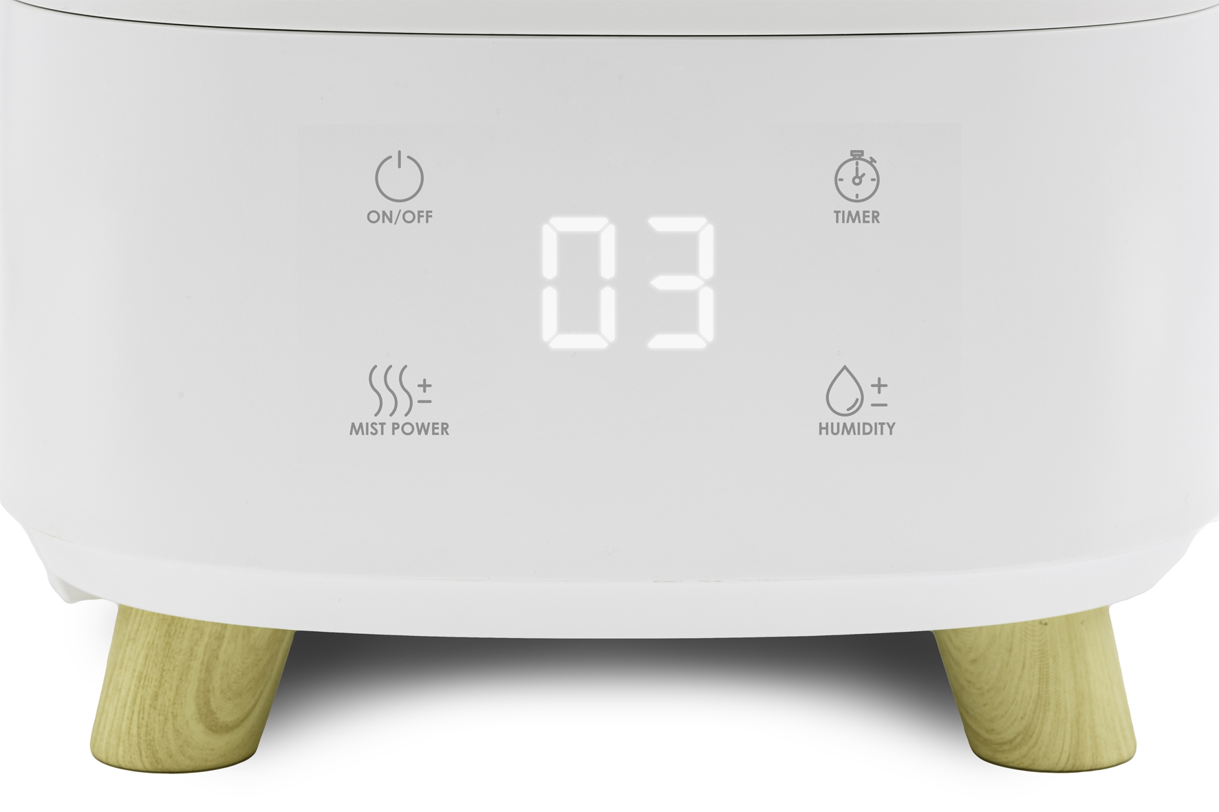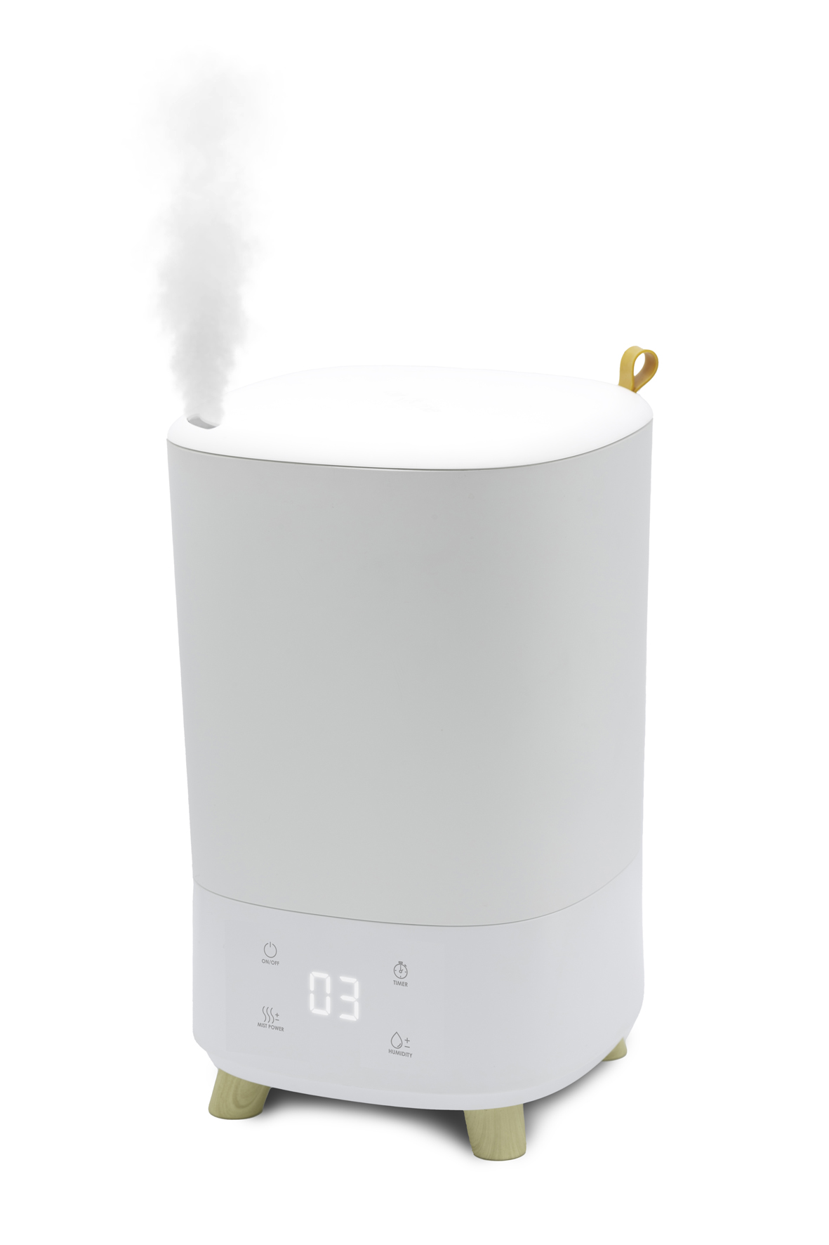 Air & Me SOLNAN Ultraschall Luftbefeuchter besticht durch sein kompaktes Design und die schicken holzfarbenen "Beinen". SOLNAN ist ein sehr benutzerfreundlicher Befeuchter und einfach zu bedienen. Der Wassertank (5,5 Liter) kann entweder von oben befüllt oder einfach aus dem Gerät entnommen werden. Die Bedienung erfolgt über ein übersichtliches Display mit Touchscreen. Der Betrieb ist geräuscharm (38 dB(A)), und SOLAN kann daher auch nachts verwendet werden. Mit dem integrierten Hygrometer wird die Luftfeuchtigkeit automatisch reguliert und über die Zeitschaltuhr lassen sich die Betriebszeiten (ausschalten) einfach programmieren. Kann auch für die Aromatherapie verwendet werden! Passt zu jeder Einrichtung und ist für Räume bis 30 m² geeignet mit einer Befeuchterleistung von 6,7 Liter / Tag. In 2 Farben erhältlich: Schwarz oder Weiß.
