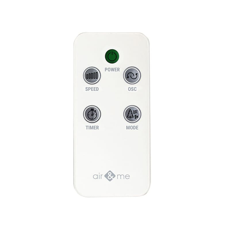 Air & Me FANTASY Ventilator Turmventilator mit einem Schwenkbereich von bis zu 70° Air & Me FANTASY Ventilator ist ein Turmventilator mit einer Höhe von knapp 120 cm. Mit einem Schwenkbereich von bis zu 70° sorgt er für angenehme Kühle in Räumen bis zu 20 m². Der schlanke Ventilator arbeitet leise, effizient und verfügt über verschiedene Lüftungsstufen, die mit der mitgelieferten Fernbedienung eingestellt werden können: Normal: Sie können aus 3 Leistungsstufen wählen Natural Breeze: arbeitet nach einem Zufallsprinzip und erzeugt eine natürliche Brise Night: Im Nachtmodus arbeitet er diskret und geräuscharm und die digitale LED-Anzeige wird deaktiviert Der platzsparende, einfach zu transportierende Standventilator passt bei jedem Interieur und auch in kleine Zimmer. Mit der Zeitschaltuhr (Timer) können Sie die Air & Me FANTASY selbst bestimmen, mit einer Arbeitszeit von 1 bis 12 Stunden. Der Turmventilator schaltet sich je nach Einstellung (Modus) automatisch ein oder aus. Im Nachtmodus funktioniert er nicht nur leise, sondern schaltet auch die Beleuchtung der LED-Anzeige aus. Auf dem übersichtlichen LED-Display wird die Raumtemperatur in Echtzeit angezeigt, die auch auf Abstand abgelesen werden kann. Mit der mitgelieferten Fernbedienung können Sie den Standventilator vom Sofa oder Ihrem Büro bedienen. FANTASY, ein eleganter Design-Ventilator, der einfach zu transportieren ist und auch in kompakten, kleinen Zimmern verwendet werden kann. Merkmale: Für Räume bis 20 m² Elegantes Design und einfach zu transportieren Normal: Sie können aus 3 Leistungsstufen wählen Natural Breeze: arbeitet nach einem Zufallsprinzip und erzeugt eine natürliche Brise Night: Im Nachtmodus arbeitet er diskret und geräuscharm und die digitale LED-Anzeige wird deaktiviert Mit Fernbedienung Übersichtliches LED-Display Temperaturanzeige 70° Schwenkbereich (Oszillationsmodus) Energieverbrauch 28 - 35 Watt Luftstrom: 455 m³/h Geräuscharm: 50 dB(A) Timer: Zeitschaltuhr 1 - 12 Stunden Kompakte Größe: Ø 32 cm und 120 cm hoch
