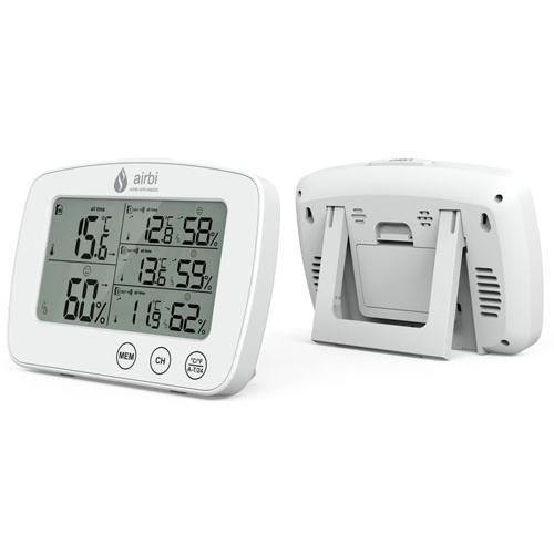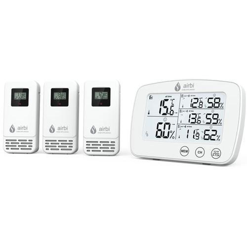 Klima-Experte – das ist der Airbi Trio Thermo-Hygrometer, das mit drei drahtlosen Temperatur- und Feuchtigkeitssensoren ausgestattet ist, mit denen Sie Räumen an vier verschiedenen Stellen überwachen können. Der Airbi Trio merkt sich die Maximal- und Minimalwerte, zeigt das Feuchtigkeitskomfortsymbol an und hat die Möglichkeit, das Display zu beleuchten. Das Paket enthält eine Basisstation und drei drahtlose Temperatur- und Feuchtigkeitssensoren.