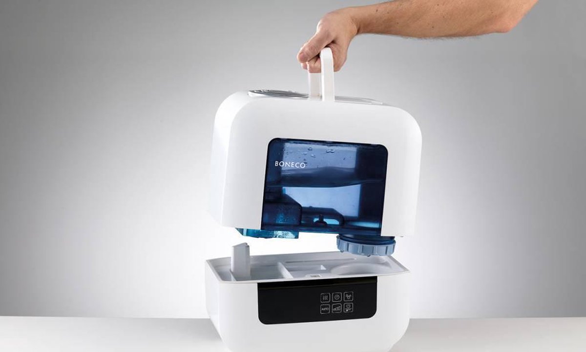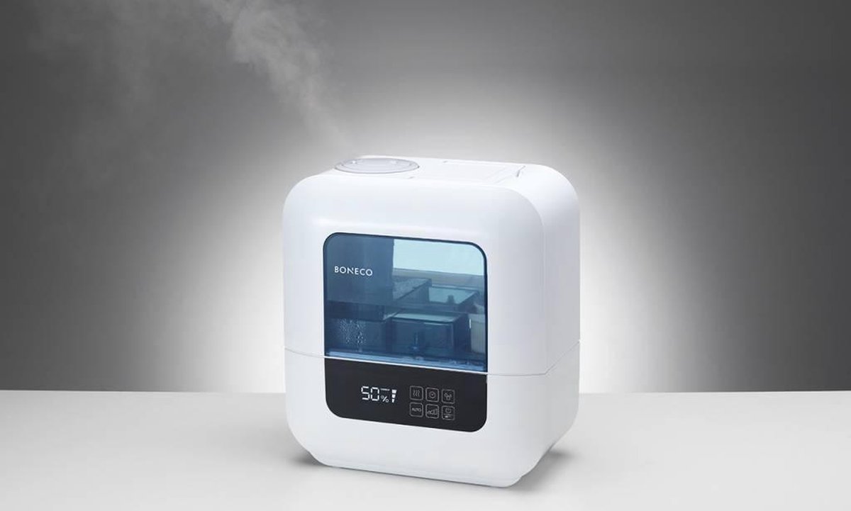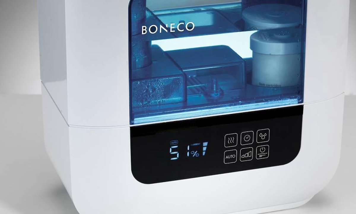 Der Ultraschall-Luftbefeuchter Boneco U700 arbeitet sauber und äußerst effizient. Dank der innovativen Reinigungsfunktion ist die Wartung besonders einfach. Zudem überzeugt dieser Luftbefeuchter durch sein elegantes Design und seine hohe Befeuchtungsleistung. Der Boneco U700 kann sowohl kalten als auch warmen Nebel erzeugen. Die gewünschte Einstellung wählen Sie ganz nach Bedarf. Ausgestattet mit Timer, Automatikmodus und einem Aromafach für ätherische Öle sorgt er für ein angenehmes und gesundes Raumklima.