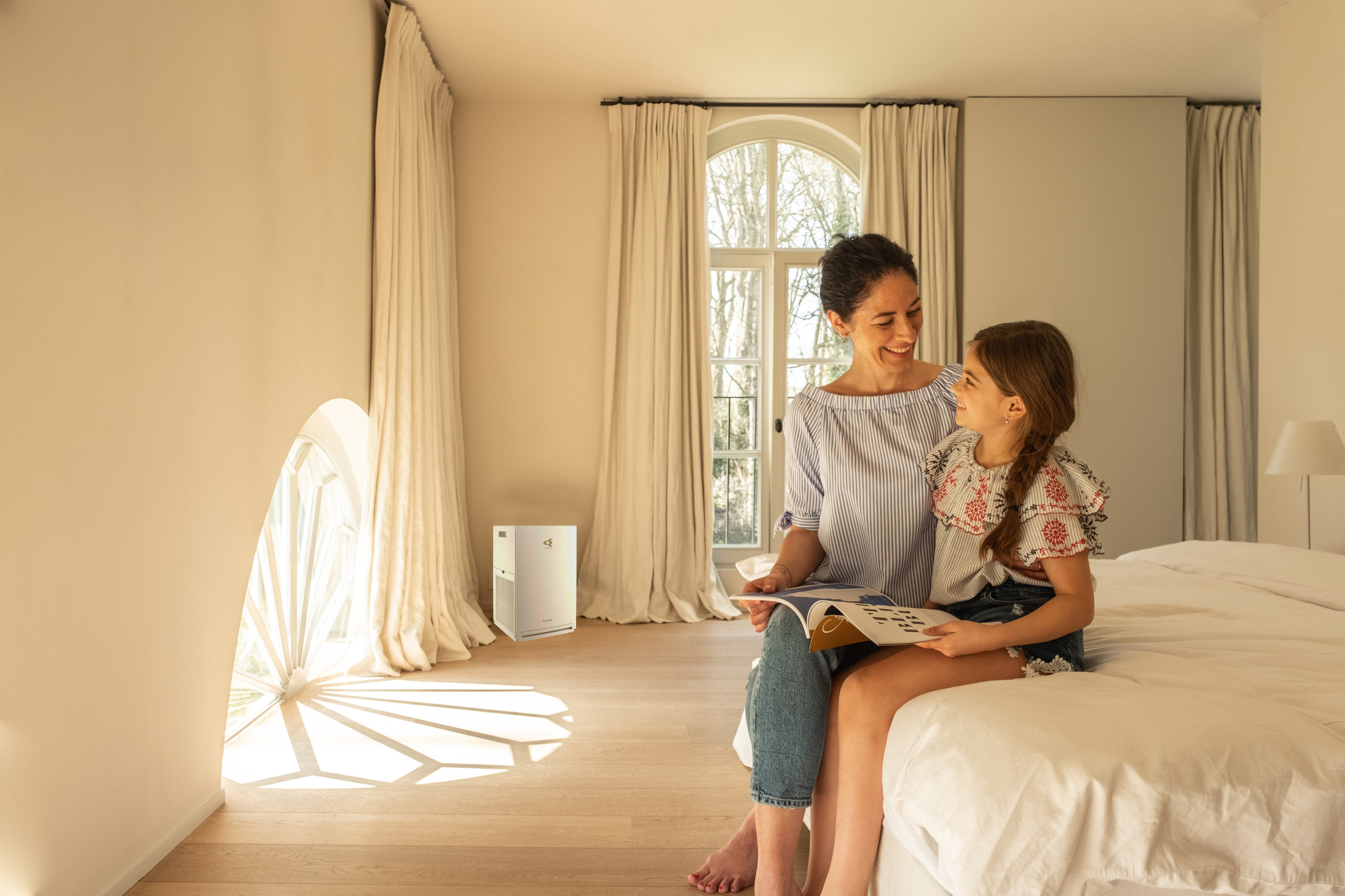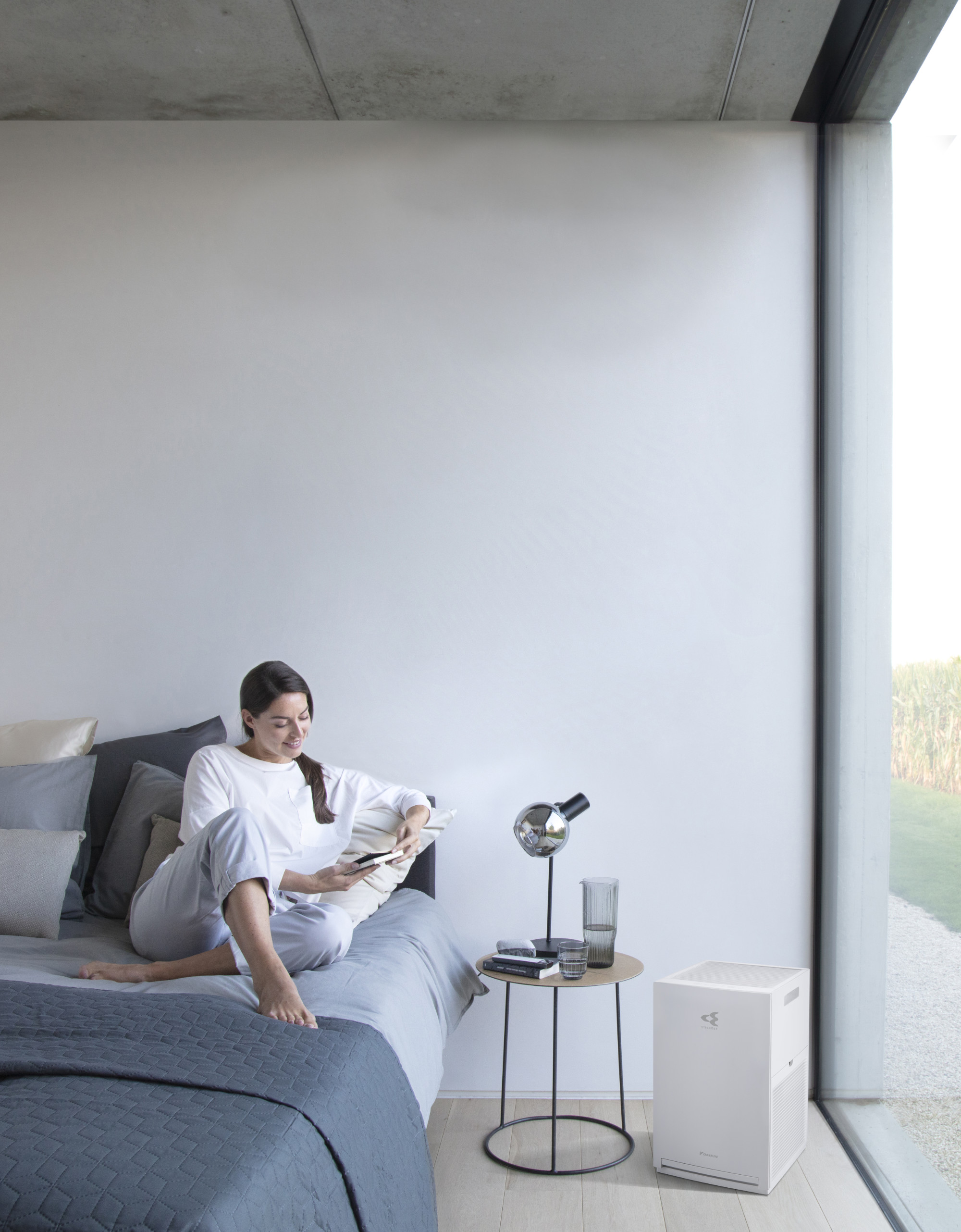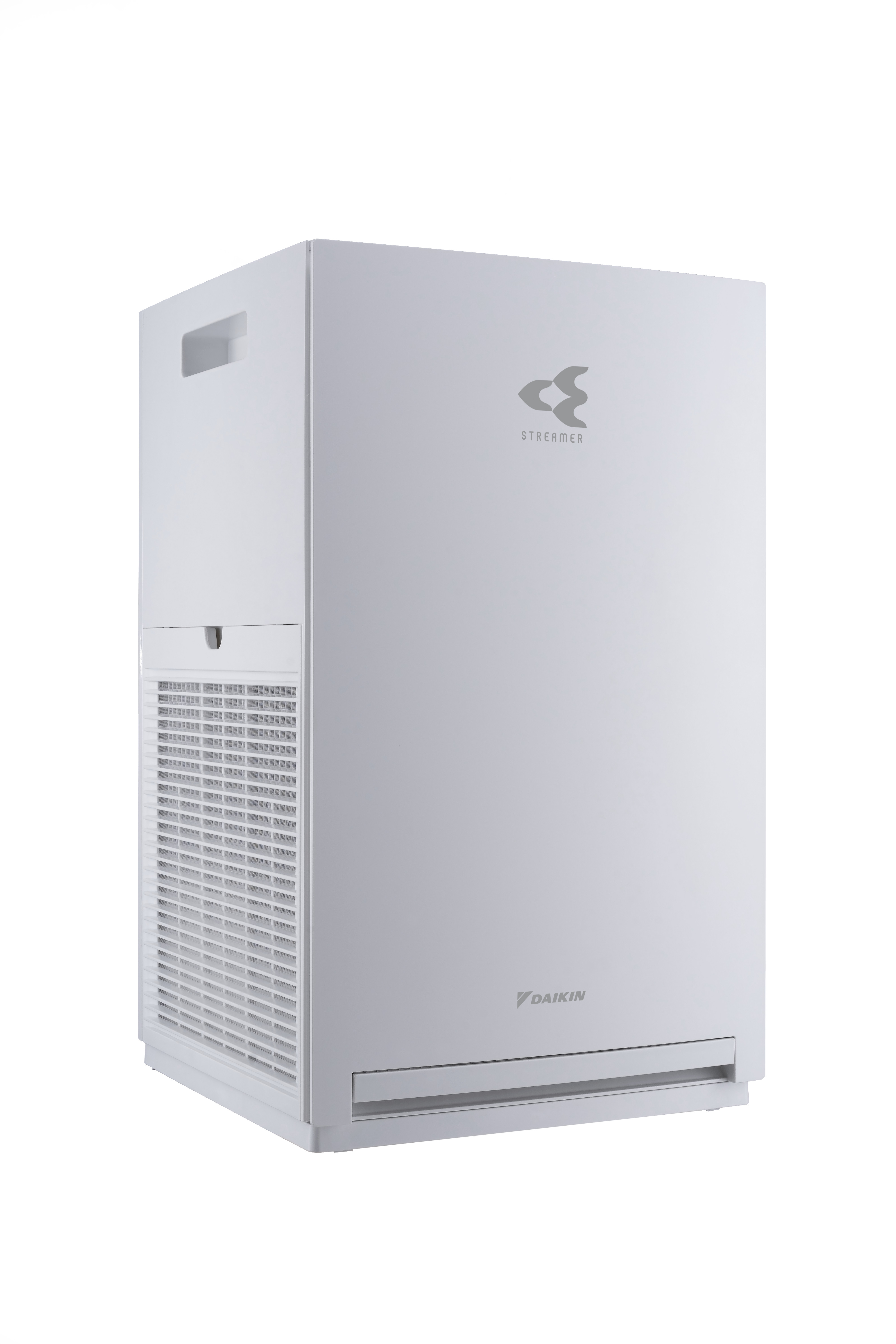 Der Daikin Luftreiniger MC30YV sorgt mit seiner aktiven Plasma-Ionen-Entladung, der Flash Streamer Technologie und dem leistungsstarken elektrostatischen HEPA-Filter für saubere und gesunde Luft in Räumen bis zu 46 m². Der ebenso kompakte wie leistungsstarke Luftreiniger ist mit nur 19 dB(A) einer der leisesten Luftreiniger in Europa. Der HEPA-Filter absorbiert Feinstaub und Schadstoffe ohne zu verstopfen und hat eine Lebensdauer von zehn Jahren. Die Streamer-Technologie inaktiviert gesundheitsschädliche Viren zuverlässig zu 99,9 % und baut andere Schadstoffe wie Gerüche und Allergene effektiv ab. Zusammen sorgen sie für eine saubere und gesunde Raumluft. Zur weiteren Ausstattung gehören Funktionen wie Sleep- oder Turbo-Modus, Kindersicherung, automatischer Start nach Stromausfall, Helligkeitsregelung. Der kleinste Luftreiniger von Daikin ist elegant und kompakt und passt perfekt in Ihr Zuhause.