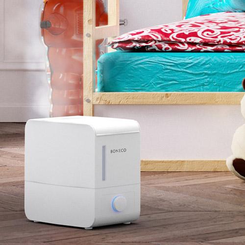 BONECO S200 Dampfluftbefeuchter sorgt für eine hygienische, sichere und wirkungsvolle Befeuchtung Ihrer Wohnräume. Dank handwarmem Dampf ist das Gerät besonders kindgerecht und ideal für Familien geeignet. Die Bedienung erfolgt intuitiv über den Drehknopf, während die Analoganzeige jederzeit einen schnellen Überblick bietet. Der leistungsstarke Dampfbefeuchter hat eine Leistung von 7,2 Litern pro Tag und eignet sich für Räume bis zu 60 m². Das Gerät S200 arbeitet ohne Filter, Entkalkungspatronen oder chemische Zusätze. Anti-Kalk-Pads reduzieren die Kalkbildung. Im Lieferumfang sind 2 Pads enthalten. BONECO - healthy air