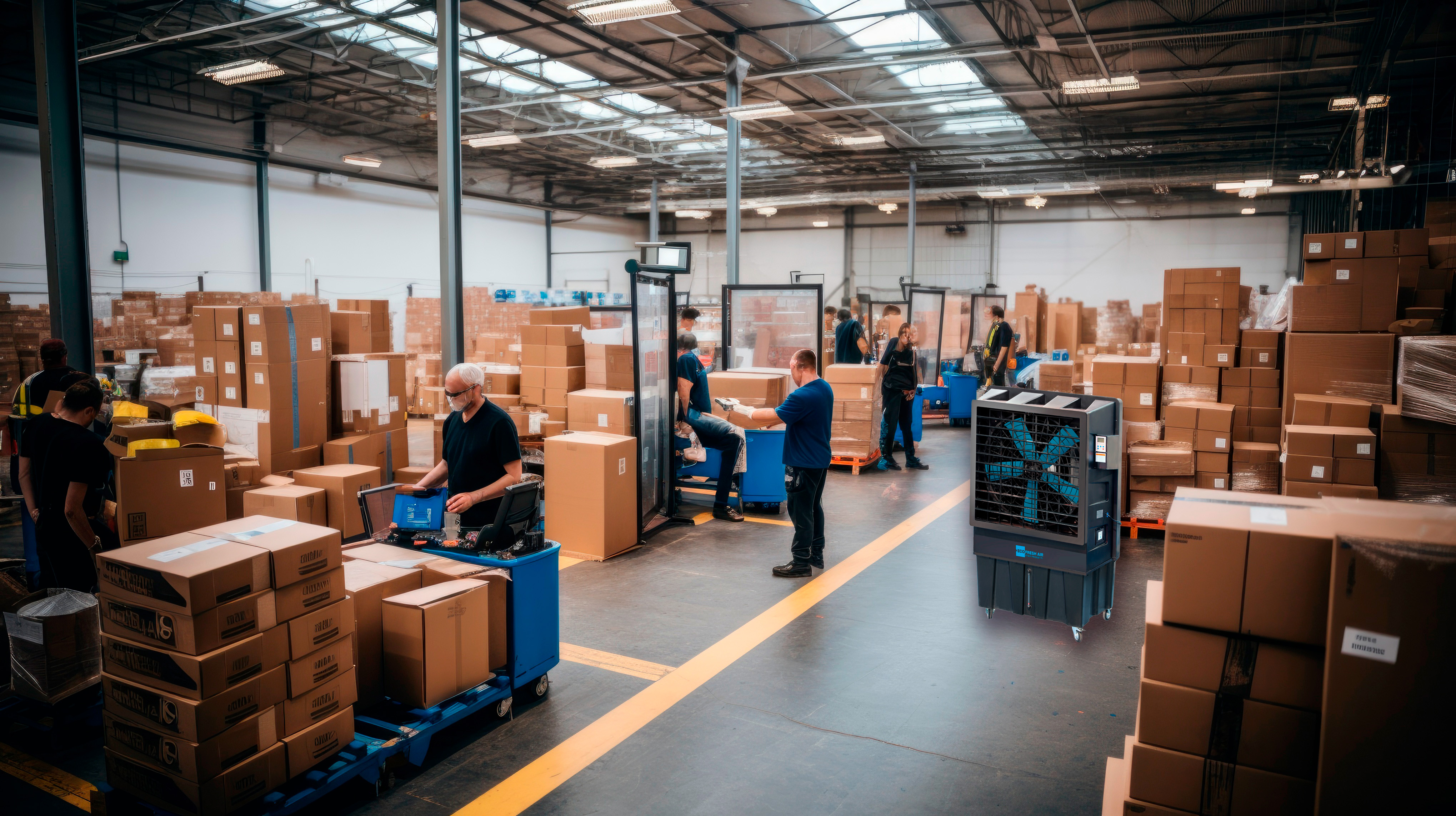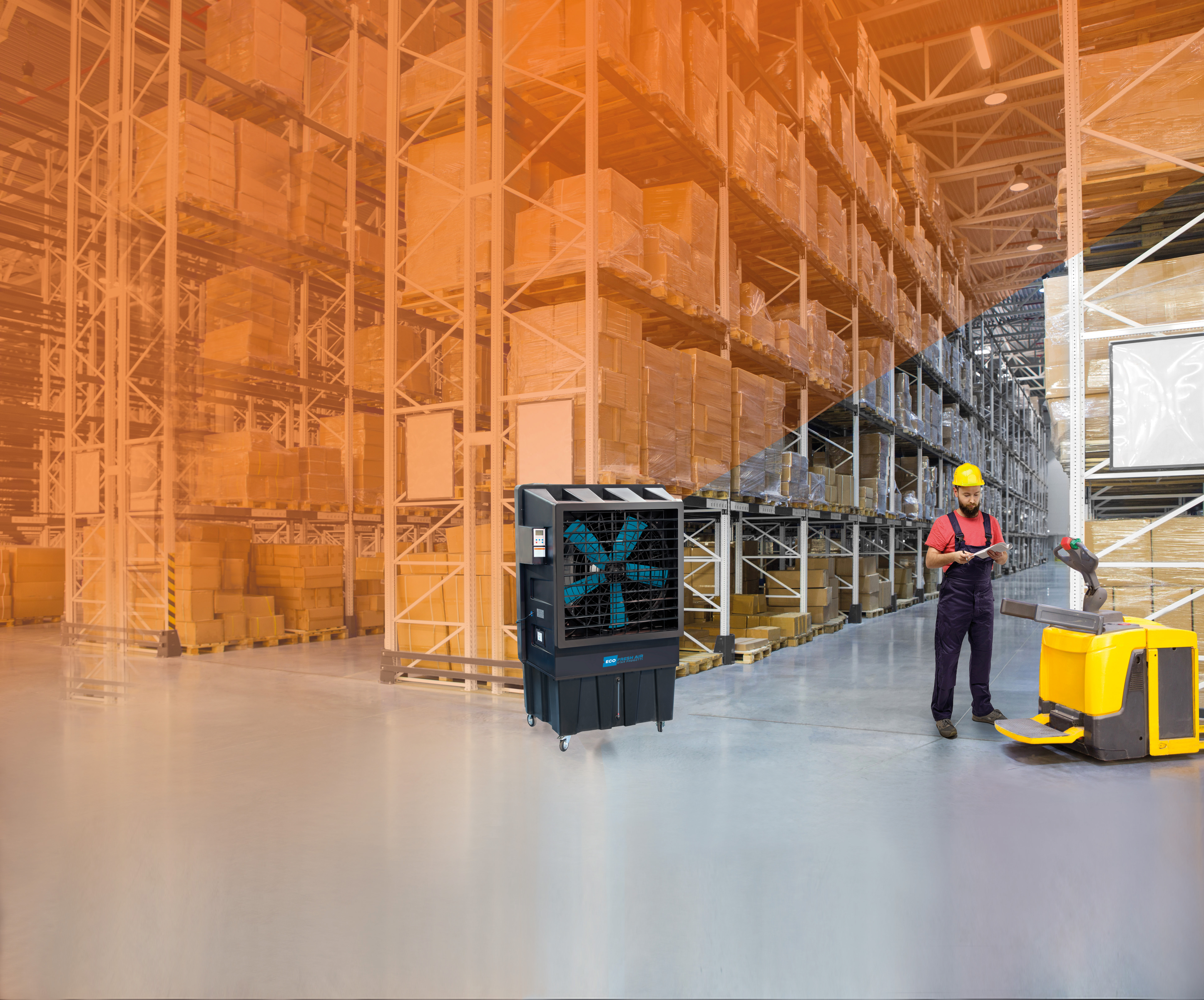 Star Progetti ECO FRESH AIR FRE22000 Industrieller Luftkühler basiert auf dem natürlichen Prinzip der Zerstäubung von Wasser zur Senkung der Umgebungstemperatur (adiabatische Kühlung). Dieser Verdunstungskühler von Star Progetti verfügt über einen Luftdurchsatz von 22.000 m³/h in Räumen bis 300 m² und kann sowohl im Innen- als auch Außenbereich verwendet werden (IPX4-Klassifizierung). Ein idealer mobiler Luftkühler für Werkstätten, (Fest)Zelte, private oder gewerbliche Bereiche, Ausstellungsbereiche, Geschäfte - einfach zu transportieren und schnell einsatzbereit. Der Star Progetti ECO FRESH AIR bietet maximale Effizienz mit niedrigen Energiekosten. Zur weiteren Ausstattung gehören eine UV-Lampe (antibakteriell), eine Anschlussmöglichkeit an die Wasserzufuhr, Fernbedienung und ein Cover (Abdeckung). Reduzieren Sie die Umgebungstemperatur um ca. 5 °C - 7 °C mit einer angenehmen, oszillierenden und regelbaren Belüftung.