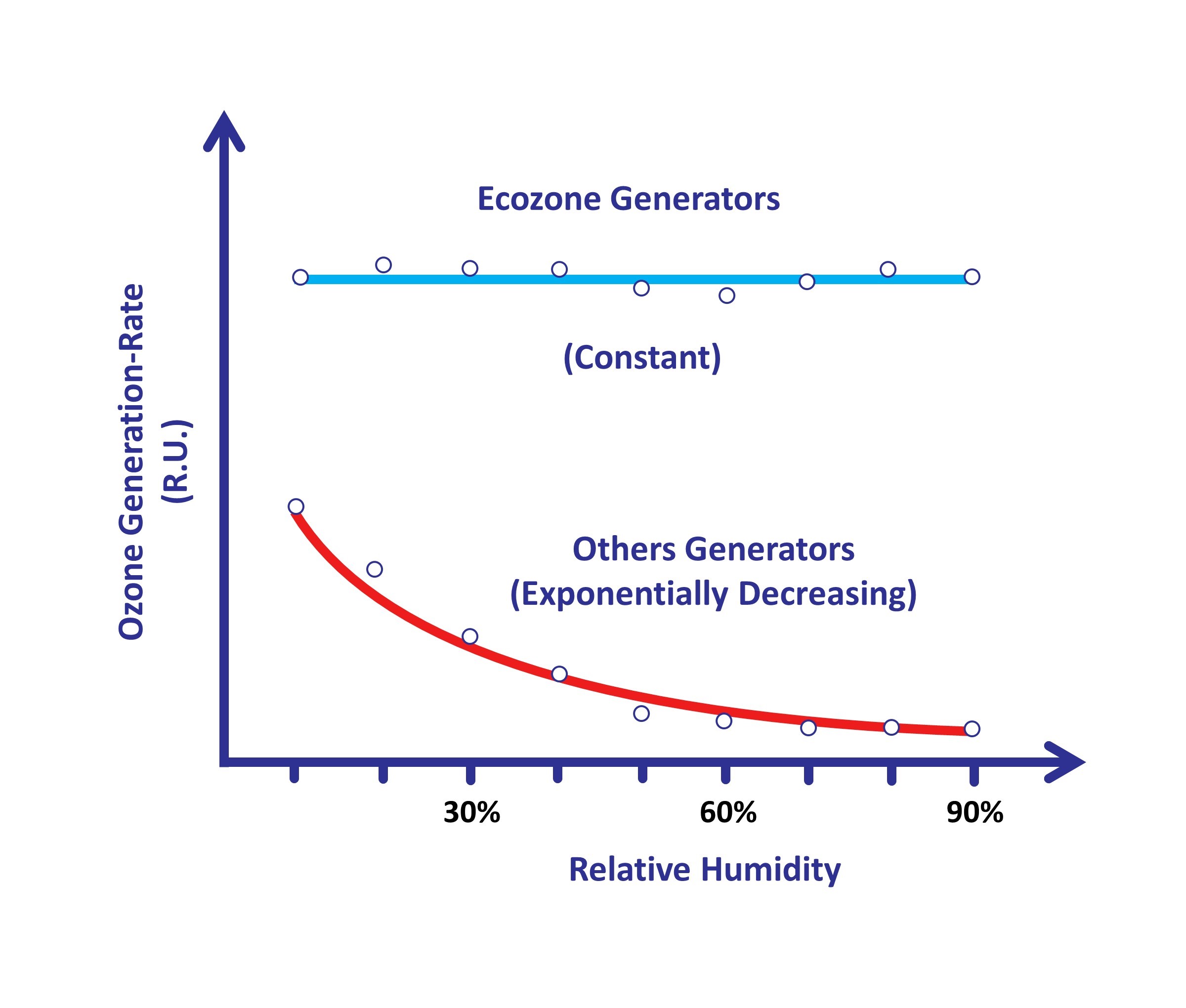 Relative Luftfeuchtigkeit Ozon-Produktionsrate Ecozone Ozon-Produktionsrate anderer Hersteller