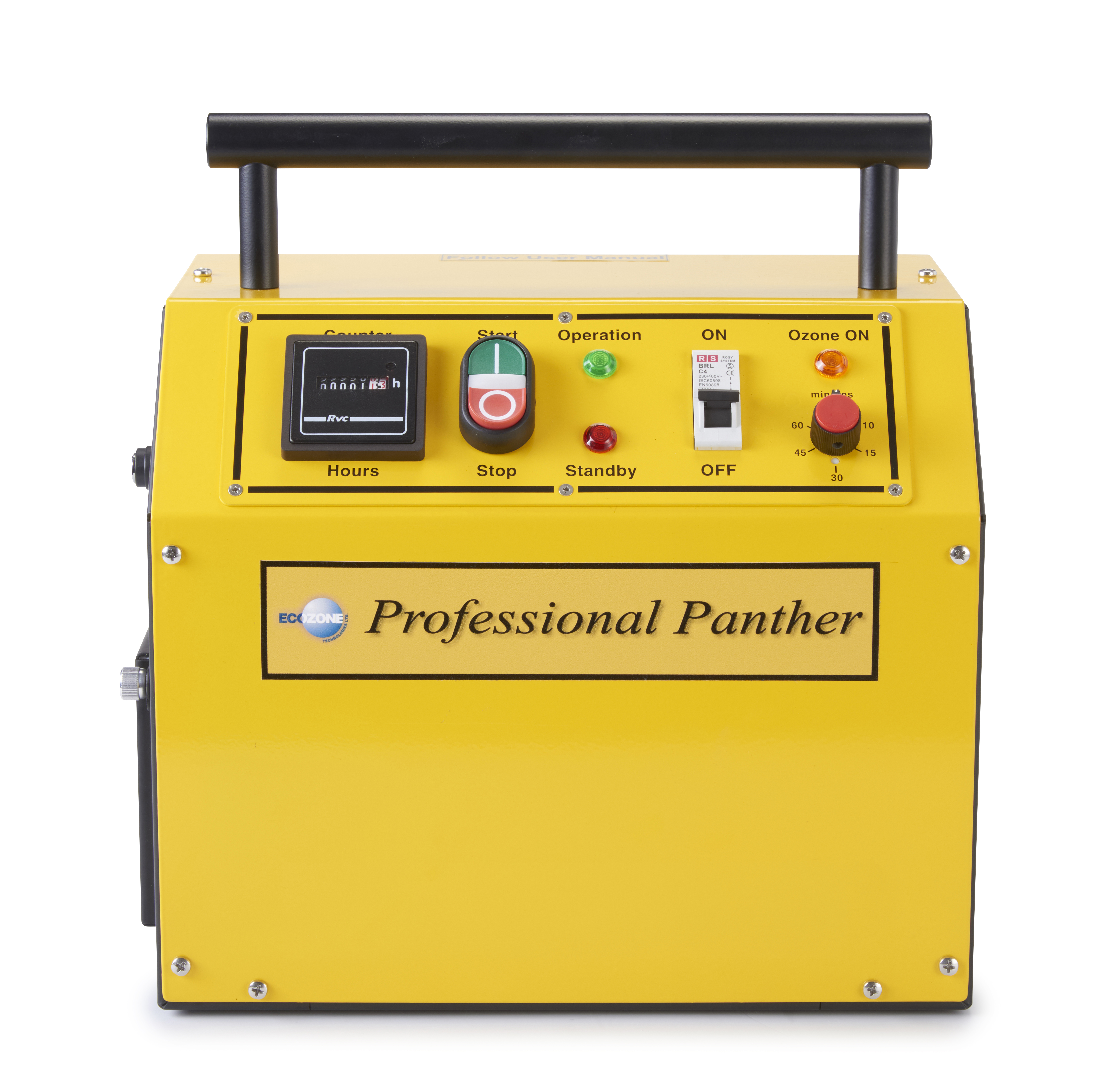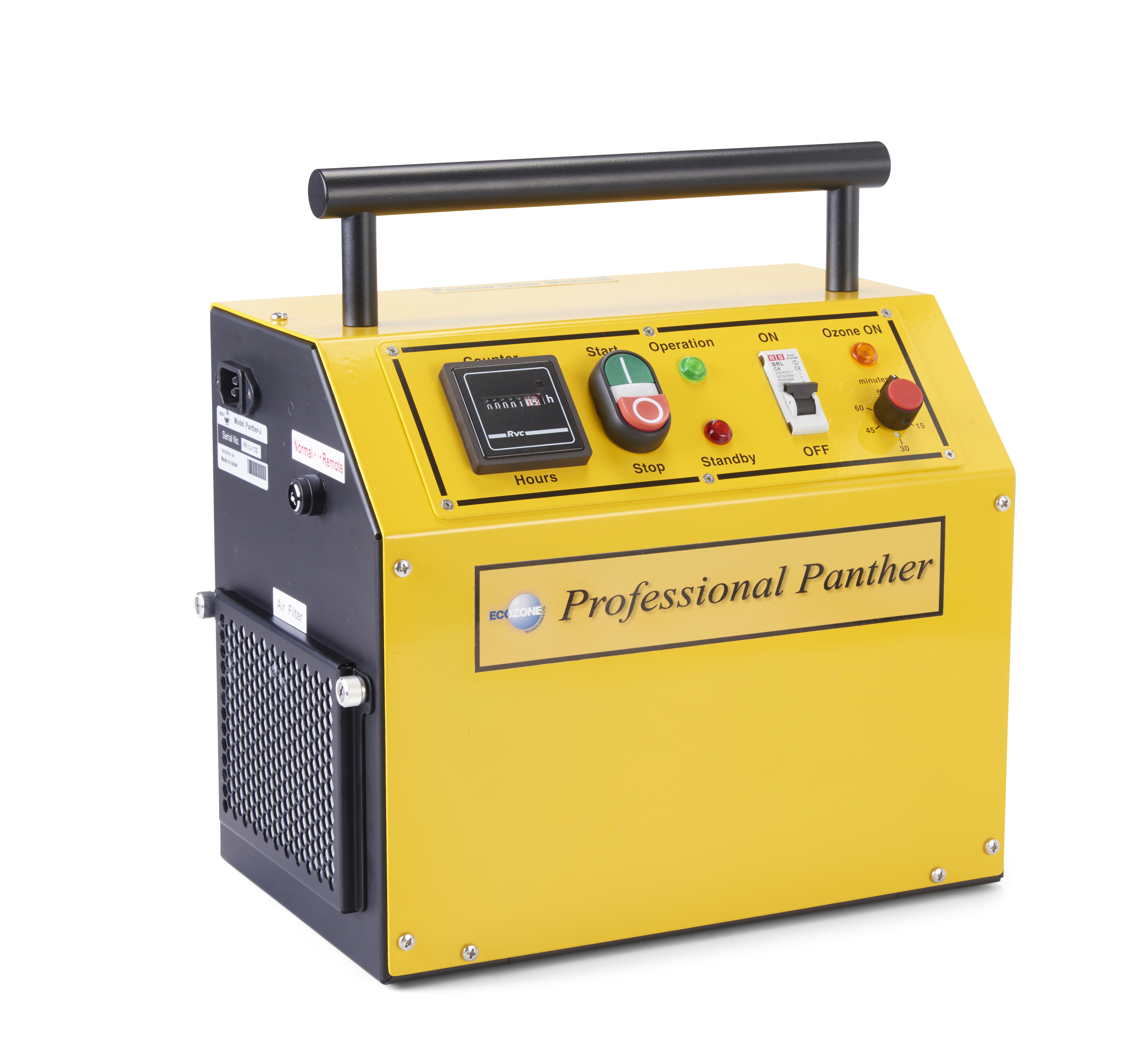 Ecozone Professional Panther Ozongenerator ist ein kompaktes, leistungsstarkes und leicht zu transportierendes Ozongerät. Mit einer Kapazität von 250 m³/h und einer Ozonproduktionsrate von 7.500 mg/h ist dieser Ozonkiller für Flächen bis 120 m² ausgelegt und funktioniert auch bei hoher Luftfeuchtigkeit einwandfrei. Ecozone Professional Panther ist ein solides Gerät, dessen Robustheit eine lange Lebensdauer garantiert. Dieser Ozongenerator von Ecozone lässt sich einfach über das Bedienfeld am Ozongenerator oder über die fernbedienbare Zeitschaltuhr (Funktionstaste an der Fernbedienung) steuern. Ideal für den Profi zur Geruchskontrolle, Geruchsbeseitigung und Hygiene:bei Sanierungsarbeiten nach Bränden und Überschwemmungen, aber auch in Hotelzimmern, Abfallbereichen. Das Gerät arbeitet auch bei hoher Luftfeuchtigkeit und in großen Räumen. Der Geruchsbeseitiger und Desinfektor von Ecozone hilft sogar bei der Bekämpfung der Krätzmilbe!