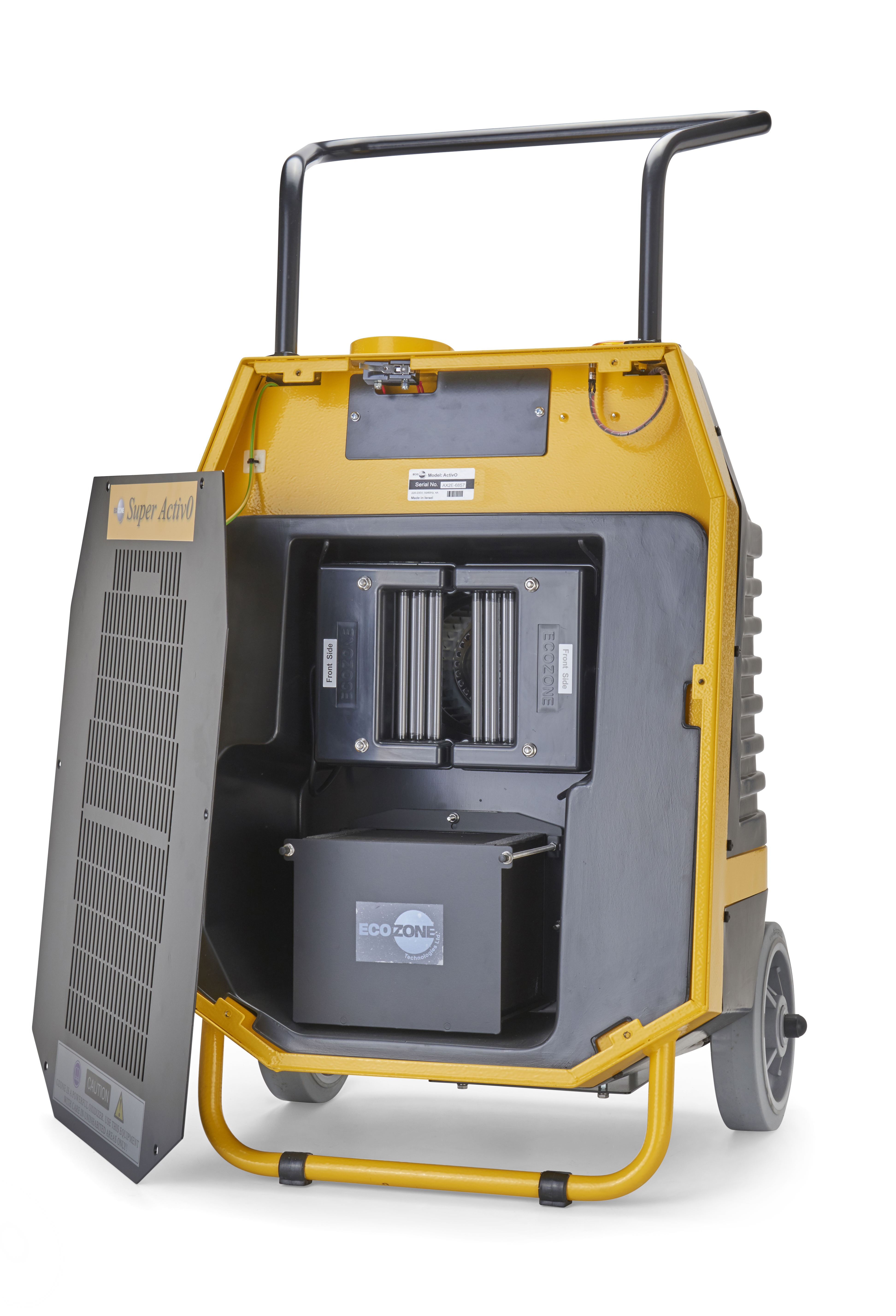 Ecozone Super ActivO™ Ozongenerator ist leistungsstark, mobil und weltweit führend in seiner Leistungsklasse. Der Super ActivO™ beseitigt Gerüche unter schwierigsten Bedingungen dank seiner einzigartigen, in den USA patentierten DBE-Technologie (Double Dielectric Barrier Entladung), die eine branchenführende Ozonleistung von 12.000 mg/h für Bereiche bis zu 200 m² erreicht. Ecozone Super ActivO™ lässt sich einfach über das Bedienfeld am Ozongenerator oder über den fernbedienbaren Timer (Funktionstaste auf der Fernbedienung) steuern. Der ideale Ozonreiniger für Profis in den Bereichen Reinigung, Rettung und Bergung mit vollautomatischem Betrieb führt problemlos einen kompletten Ozonvernichtungszyklus durch. Der Ecozone Geruchsbeseitiger und Desinfektor hilft sogar bei der Bekämpfung der Krätzmilbe!