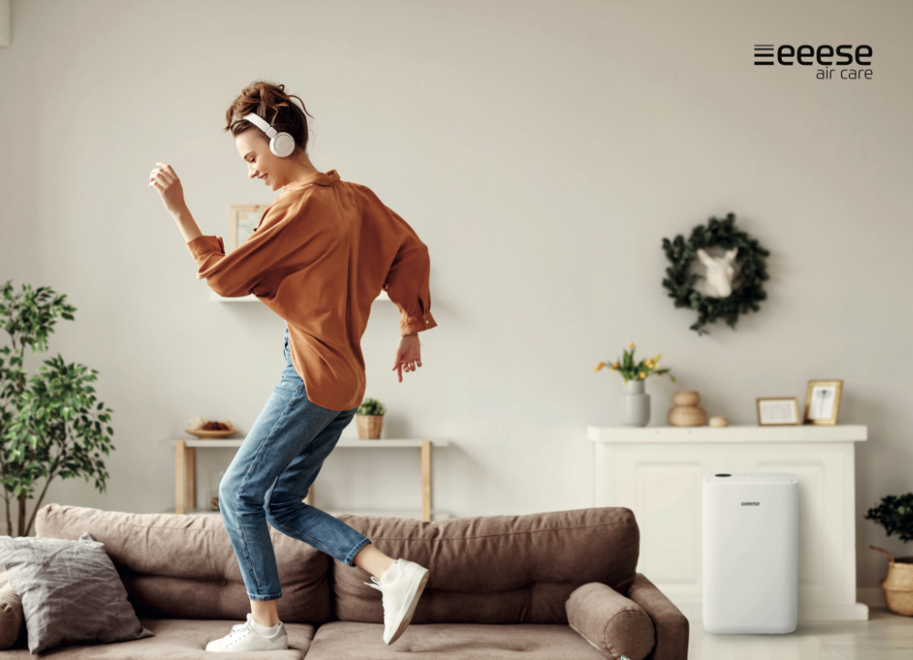 Eeese Otto 20L Luftentfeuchter - das superleise Jubiläumsmodell mit WLAN! Der Eeese Otto 20L Luftentfeuchter ist ein Jubiläumsmodell mit WLAN und sehr geringem Geräuschpegel von nur 44 dB(A)! Otto kann somit auch während der Nacht arbeiten, ohne Ihren Schlaf zu stören (Sleep-Mode-Funktion). Dieser Lufttrockner erfüllt alle Erwartungen, die man von einem kompakten Gerät für den privaten Gebrauch erwartet. Mit seiner Wäschetrockner-Funktion hilft er in vielen Haushalten, die Wäsche schnell und schonend zu trocknen. Otto ist die ideale Alternative zum Wäschetrockner - praktischer, sparsamer und umweltfreundlicher mit einem Stromverbrauch von unter 245 Watt! Er ist ideal für Räume bis 100 m² und verfügt über eine Entfeuchtungsleistung von 20 Liter pro Tag. Eeese Otto Luftentfeuchter ist IPX4-klassifiziert und kann bedenkenlos in Nassbereichen wie Dusche, Bad usw. eingesetzt werden. Gerade in diesen Bereichen ist die Luftfeuchtigkeit sehr hoch und der Eeese Otto Luftentfeuchter sorgt schnell für eine gesunde Luftfeuchtigkeit und verhindert die Bildung von Kondenswasser und Schimmel. Die automatische Feuchtigkeitsregulierung ermöglicht eine selbstständige Kontrolle und Regulierung der Raumluftfeuchte.Über das LCD-Display kann die gewünschte Luftfeuchtigkeit eingestellt und sichergestellt werden, dass die gewünschte Luftfeuchtigkeit erreicht wird. Mit der praktischen Timerfunktion (Zeitschaltuhr) können Sie steuern, wann der Luftentfeuchter aktiv sein soll (automatisches Ein-/Ausschalten). Diese Einstellungen werden gespeichert und müssen bei der nächsten Verwendung nicht erneut eingegeben werden. Das integrierte WLAN ermöglicht die Steuerung von OTTO über Ihr Smartphone oder Tablet, eine praktische und flexible Möglichkeit, um den Luftentfeuchter auch auf Abstand bedienen zu können. OTTO ist auch mit Google Assistant kompatibel. Der Wassertank von Otto hat ein Fassungsvermögen von 4,5 Litern und ist mit einer automatischen Abschaltautomatik bei vollem Tank ausgestattet. Selbstverständlich besteht auch die Möglichkeit eines permanenten Kondensatanschlusses. Das hat den großen Vorteil, dass Sie Ihr Zimmer auf diese Weise entfeuchten können, ohne sich Gedanken um den vollen Wassertank machen zu müssen. Eeese Otto 20L Luftentfeuchter lässt sich mit Hilfe der perfekt in das Design integrierten Tragegriffe leicht in andere Räume transportieren. Dieser Eeese Luftentfeuchter gehört zu den beliebten Eeese-Luftentfeuchter Modellen, mit der perfekten Kombination (Synergie) zwischen solidem Wissen über das europäische Klima und die Umwelt und dem stilvollen, geradlinigem skandinavischem Design mit der neuesten Technologie. OTTO'S Merkmale: Für Räume bis 100 m² Stilvolles und kompaktes Design Übersichtliche und einfach zu bedienende LED-Anzeige mit Softkey Entfeuchtungsleistung 20 Liter pro Tag WLAN - Bedienung über Ihr Smartphone, Tablet oder Google Assistant (kompatibel) Extrem leise – nur 44 dB(A) Sehr geringer Stromverbrauch – nur 245 Watt Wäschetrockner-Modus (Zirkulierende Trocknungsfunktion) Timer-Funktion Antibakterieller Luftfilter Integrierter Ionisator IPX4-klassifiziert – geeignet zur Verwendung in Nassräumen Integrierte Handgriffe und Rollen Kindersicherung Wasserbehälter: 4,5 Liter Automatisches Abschalten bei vollem Wassertank Möglichkeit eines permaneten Kondensatanschlusses Umweltfreundliches Kältemittel R290 CHOOSE GREEN, go with Eeese Klimaanlagen und Luftentfeuchter von eeese enthalten das Kältemittel R290, ein umweltfreundlicheres Kältemittel als fluorierte Gase (FKW), die bisher als Kältemittel in Klimaanlagen, Luftentfeuchtern und vielen anderen Geräten verwendet wurden. Kältemittel R290 hat ein Treibhauspotenzial (GWP) von 3, das die Ozonschicht nicht abbaut.