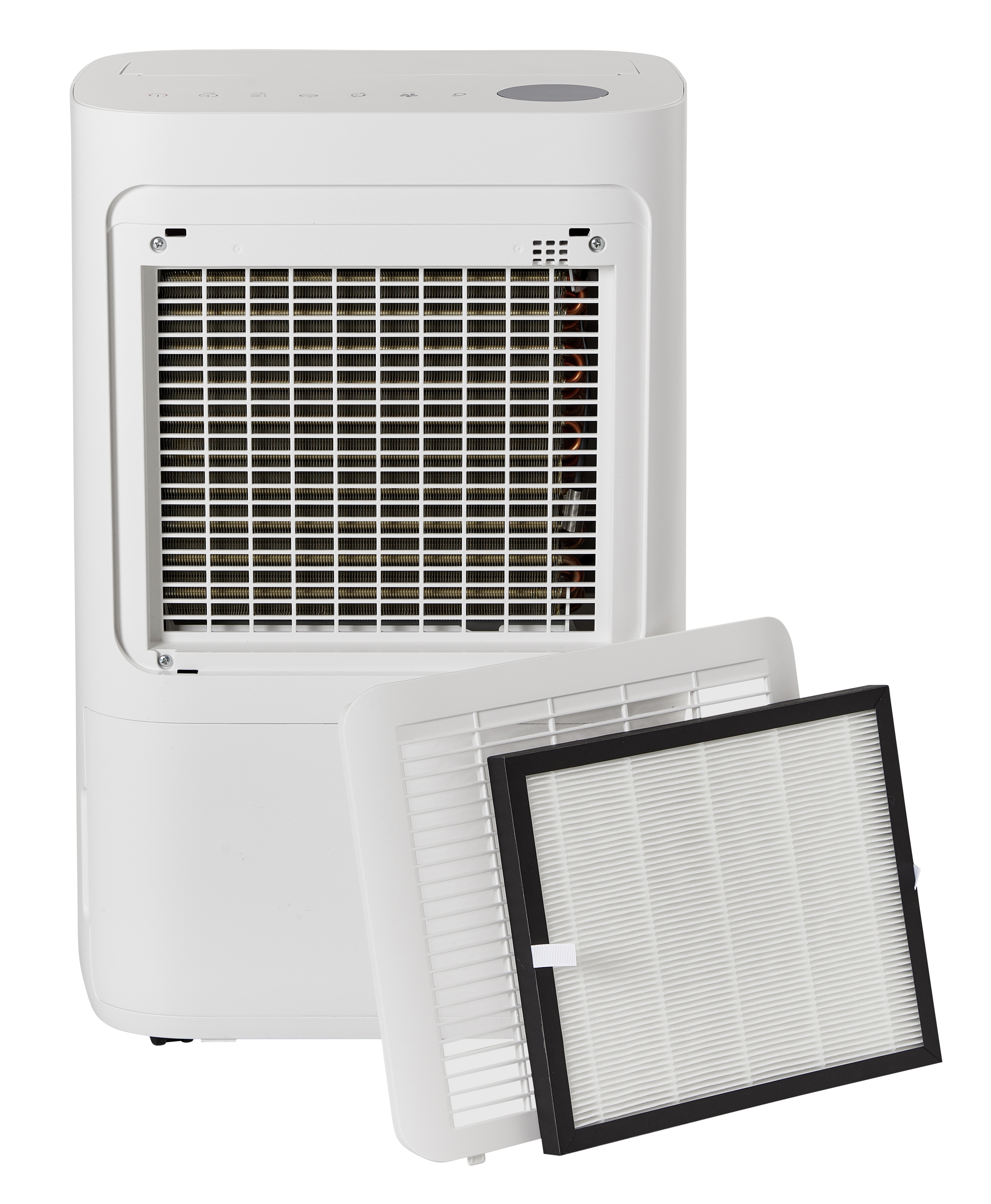 Eeese Otto 25L Luftentfeuchter ist ein leistungsstarker Luftentfeuchter, der sowohl über WLAN als auch mit Ihrem Google Assistant gesteuert werden kann. Es war nie einfacher, eine perfekte Kontrolle über die Luftfeuchtigkeit in Räumen zu haben, und er bietet weit mehr, als man von einem kompakten Luftentfeuchter für Privathaushalte erwarten würde. Otto arbeitet mit seinen nur 44 dB(A) extrem leise und hat eine zirkulierende Trocknungsfunktion für Kleidung. Das Jubiläumsmodell der Firma eeese-air care ist IPX4-klassifiziert und kann auch in Nassbereichen (Badezimmer) verwendet werden. Sein Stromverbrauch beträgt nur 290 Watt - konzipiert für Räume bis 125 m² und mit einer Entfeuchtungsleistung von 25 Litern pro Tag.