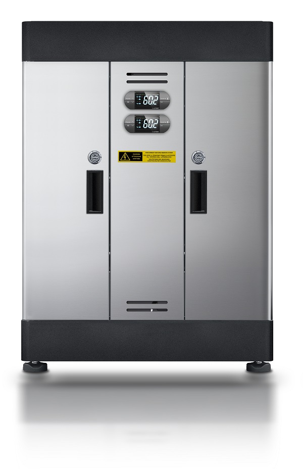 Pego ES100 Industrieller Dampfbefeuchter ist eines der Modelle der Luftbefeuchter-Reihe des Easysteam (ES) mit austauschbare Zylinder. Eine fortschrittliche und flexible Dampfluftbefeuchtungslösung für jeden Bereich, ob privat, gewerblich oder industriell, wie beispielsweise in Industriehallen, Büros, Wohnzimmer, Museen, türkische Bäder, technologischen oder medizinischen Gebieten. Pego ES100 Luftbefeuchter ist eine moderner, kompakter und anwenderfreundlicher Elektroden-Dampfluftbefeuchter und die ideale Lösung für Räumen bis 22.800 m³, mit einer Befeuchtungsleistung von max. 96 kg/Stunde. Die integrierte elektronische Steuerung ermöglicht eine optimale Befeuchtung, auch dank der Eigendiagnostik. Mit hoher Leistung, einem fixen Wasseranschluss, einfacher Installation und Wartung. Luftbefeuchter mit Tauchelektroden - 3-Phasen Luftbefeuchter (96 kg/h) und Masterslave-Funktion für bis zu 3 Befeuchtern