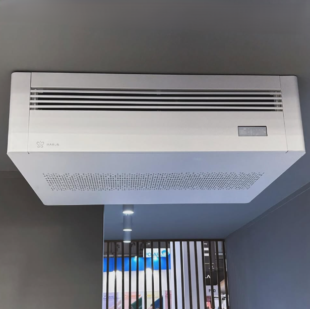 Innova 2.0 12HP ELEC Ceiling ist ein besonders platzsparendes Monoblock‑Klimagerät ohne Außeneinheit, das speziell für die horizontale Deckenmontage entwickelt wurde. Mit einer Bauhöhe von nur 31,4 cm gehört sie zu den schlanksten Geräten ihrer Klasse und eignet sich ideal für Räume bis 35 m². Sie kombiniert moderne Inverter‑Technologie mit einem eleganten, kompakten Design und lässt sich dank des durchdachten Monoblock‑Systems einfach selbst installieren. Gleichzeitig arbeitet sie energieeffizient und leise, wodurch sie sich perfekt für Wohn‑ und Arbeitsbereiche eignet. Auch dieses Modell reduziert nicht nur effektiv die Luftfeuchtigkeit und bietet eine starke Kühlleistung, sondern überzeugt zusätzlich mit einer zuverlässigen Heizfunktion. Neben der effizienten Wärmepumpentechnologie verfügt die ELEC‑Variante über eine integrierte elektrische Zusatzheizung, die automatisch unterstützt, sobald die Wärmepumpe allein nicht mehr ausreicht. Dadurch bleibt die Heizleistung selbst bei niedrigen Außentemperaturen konstant und stabil. Die Bedienung ist flexibel: wahlweise per Fernbedienung, über das integrierte Touch‑Bedienfeld oder bequem von unterwegs über die App. Das Besondere an der Innova-2.0-Serie ist die innovative BLDC-Inverter-Technologie. Diese verbessert sowohl den akustischen Komfort durch reduzierte Geräuschentwicklung als auch die Leistungsfähigkeit des Geräts. Ohne sichtbares Außengerät fügt sich das System vollständig harmonisch in die Architektur ein. Das flache Decken‑Design hält die Wandflächen frei und macht das Gerät zur idealen Lösung für Wohnungen, Büros und gewerbliche Räume, in denen eine klassische Split‑Klimaanlage nicht möglich oder nicht gewünscht ist.