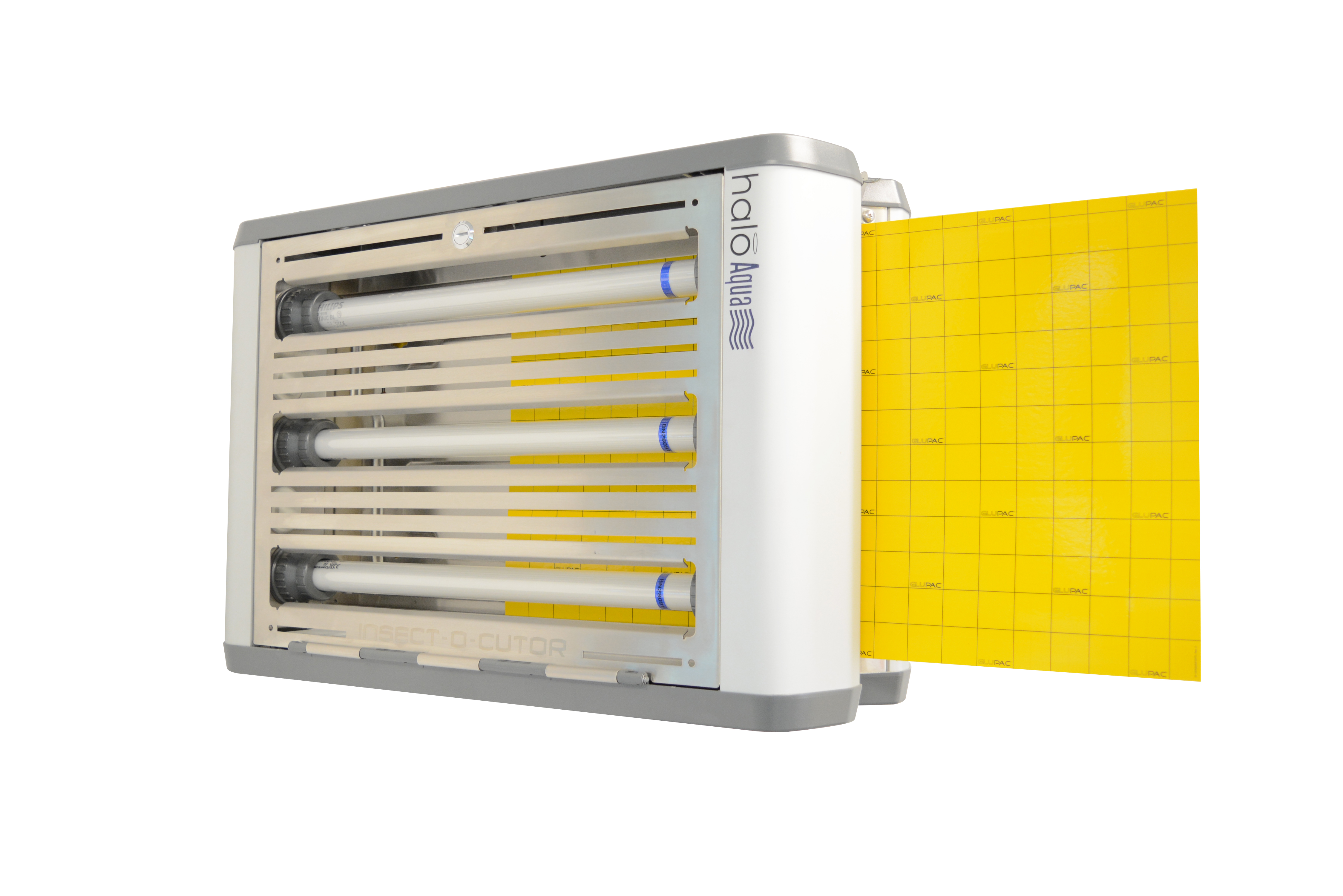 Insect-O-Cutor Halo 2x45 Aqua UV-Insektenfalle ist Teil der umfassenden Halo®-Reihe und eignet sich für den Einsatz in anspruchsvollen Bereichen. Diese UV-Fliegenfalle ist die ideale Lösung für feuchte Umgebungen oder Bereiche, die nass gereinigt werden müssen. Dieser Insektenvernichter ist IP45-klassifiziert (Spritzwassergeschützt) und kombiniert Effektivität mit zeitgemäßem, diskretem Design. Das Klebefoliengerät ist selbstverständlich mit der patentierten Glupac®-Klebefolie mit UV-Stabilisator versehen und hat einen Wirkungsbereich von 240 m². Der Insect-O-Cutor Halo 2x45 Aqua UV-Insektenfalle ist ein doppelseitiges Modell (2 x 45 Watt!) und sehr robust (Edelstahlkonstruktion). Außerdem ist dieser Insektenvernichter mit FEP-beschichteten, bruchsicheren UV-Röhren ausgestattet und die Wartung ist einfach, dank der schwenkbaren Frontabdeckung. Der Halo 2x45 kann einfach an der Decke (Plafond) montiert werden. Auch erhältlich als Insect-O-Cutor Halo 45 Aqua UV-Insektenfalle (einseitig – 120 m²). Weitere Modelle aus der Halo®-Reihe sind in 15, 30 (ein- oder doppelseitig) oder 45 Watt erhältlich (ohne IP45-Klassifizierung).