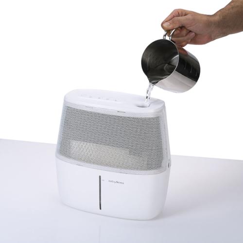 Stylies Alaze Luftbefeuchter ist ein kompakter und geräuscharmer Kaltwasserverdunster, der die Raumluft auf eine natürliche Weise (Verdunstung von kaltem Wasser) befeuchtet. Außerdem filtert der Stylies Alaze kleine schwebende Partikel wie Staub oder Pollen aus der Luft. Konzipiert für Räume bis 40 m² (110 m³), mit einer Befeuchtungsleistung von 0,28 Liter pro Stunde (D.A.S.T.- Technologie) ist dieser Kaltwasserverdunster ideal für Ihr Wohnzimmer, Schlafzimmer, Kinder- oder Babyzimmer. Der integrierte Hygrostat kontrolliert und steuert die gewünschte Luftfeuchtigkeit. Zur weiteren Ausstattung gehören der 3 Liter Wassertank und die antibakterielle Filterkassette. Der Stylies Kaltwasser-Befeuchter ist einfach zu reinigen und warten. DtGV Testsieger im Bereich Luftbefeuchter (Deutsche Gesellschaft für Verbraucherstudien)