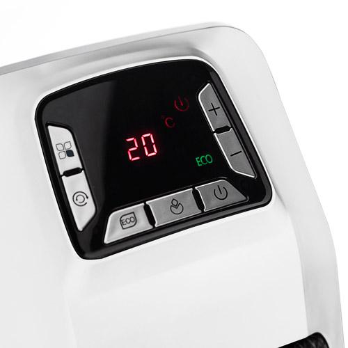 Der Argoclima FUSION Keramik Heizstrahler ist mit zwei Heizstufen ausgestattet 1300 und 2000 Watt und einer Sommerbelüftung (nur Ventilator). Diese kompakte und leistungsstarke Zusatzheizung ist für Räume bis 23 m² (60 m³) konzipiert. Argo FUSION vereint Leistung und intelligente Technologie. Ausgestattet mit einem regelbaren Thermostat, einem Überhitzung- und Kippschutz übersichtlichen Display mit vielen Funktionen kann dieser elegante Heizstrahler ganzjährig verwendet werden - sowohl als Heizung als auch Ventilator und passt in jedes Interieur.