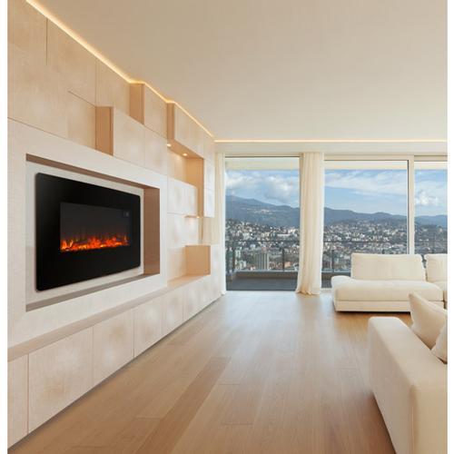 Argoclima WAVE Elektrokamin mit Keramikwiderstand - elegant und eindrucksvoll wie ein echter Kamin Der Argoclima WAVE Keramik-Elektrokamin sorgt an kalten Tagen für Komfort und Gemütlichkeit und kann als Einbau- oder Standheizung verwendet werden (Wandmontage ist mittels mitgelieferten Halterung möglich). Argo WAVE besteht aus einer großen Frontfläche aus gehärtetem Glas in Schwarz und hat 5 verschiedene Flammeneffekte, die durch hocheffiziente LEDs (mit langer Lebensdauer und einem sehr geringen Verbrauch) erzeugt werden. Der Kamin erzeugt dank des Keramikwiderstandes sofortige Wärme, jedoch mit einem geringen Energieverbrauch. Ideal als stimmungsvolle Zusatzheizung für Räume bis 20 m² (50 m³). Das digitale Thermostat verfügt über eine große Temperaturauswahl. Zur weiteren Ausstattung gehören programmierbare Zeitschaltuhr, Fernbedienung, Überhitzungsschutz und im Lieferumfang enthalten ist ein Montagekit. Merkmale: Für Räume bis 20 m² (50 m³) Elegante und leistungsstarke keramische Zusatzheizung Einbau- oder Standheizung Tragbar Breite Frontfläche aus gehärtetem Glas, schwarz 5 verschiedene Flammeneffekte Leistungsstarkes Gebläse für sofortige Wärme Konstante Wärmeabgabe dank des Keramikelements Hocheffiziente LEDs - lange Lebensdauer und geringem Verbrauch Inklusive Fernbedienung Max. Leistungsaufnahme: 1500 Watt Sehr niedriger Energieverbrauch Digitales Thermostat Timer (Zeitschaltuhr) 1 - 8 Stunden Überhitzungsschutz