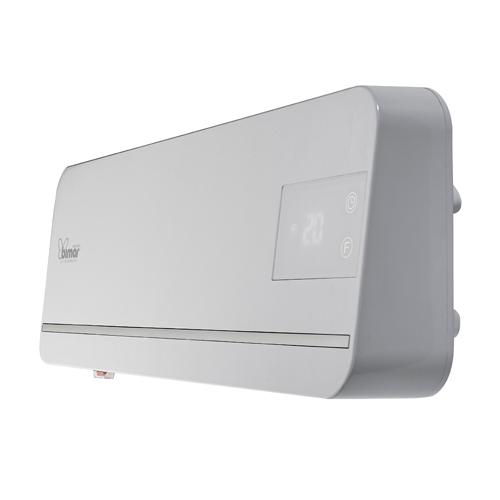 Bimar HP116 Heizlüfter zur Wandmontage Der keramische Heizlüfter Bimar HP116sorgt mit seinem PTC-Keramik-Heizelement für eine rasche und wohlige Wärme in Räumen bis 25 m² (65 m³). Ausgestattet mit 4 Funktionen - Standby / Ventilator / ECO-Heizung (1000 W) / Rapid (2000 W) (Heizen) kann er ganzjährigen verwendet werden. Während der kalten Jahreszeit als Heizung und an warmen Tagen als Ventilator. Der regelbare Thermostat ist einstellbar für eine Raumtemperatur von 10 - 49 °C und die Schutzklasse IP22 ermöglicht die Verwendung dieser keramische Zusatzheizung in Nassbereichen (Badezimmer). Bimar HP116 Keramik Wandheizlüfter ist zudem mit einem Überhitzungsschutz und einer automatischen Abschaltfunktion bei offenem Fenster (Fenstersensor) bestückt. Für noch mehr Komfort sorgen das elektronische Bedienfeld mit LED Beleuchtung, eine Fernbedienung und eine Zeitschaltuhr mit ON/OFF Timer (1-12 Stunden) mit der Möglichkeit zur Tages- oder Wochenprogrammierung. Die Frontlamellen sind schwenkbar (Hoch/Tief-Oszillation, automatisch oder fixiert) und Sie spüren einen angenehmen, gleichmäßigen Luftstrom. Der Bimar Keramik-Heizlüfter passt seine Leistung an die Umgebungstemperatur an: bei niedriger Temperatur = maximale Leistung und umgekehrt. Merkmale: Für Räume bis 25 m² (65 m³) Keramischer Wandheizlüfter mit PTC-Keramik-Heizelement 2 Heizmodi: ECO / RAPID Leistungsaufnahme: 1000 / 2000 Watt 4 Funktion: Standby / Fan / ECO-Heizung (1000 W) / Rapid (2000 W) (Heizen) Für Nassbereiche: IP22 Klassifizierung Max. Leistung 2000 Watt Elektronisches Bedienfeld mit LED-Beleuchtung Fernbedienung Ventilatorfunktion Schwenkbare Frontlamelle (oszillierenden Lamellen) Regelbarer Thermostat (Kontrolle der Raumtemperatur) Überhitzungsschutz Programmierbarer wöchentlicher Timer Fenstersensor mit Abschaltvorrichtung Zeitschaltuhr (ON/OFF): 1 - 12 Stunden Inklusive Wandmontage-Set