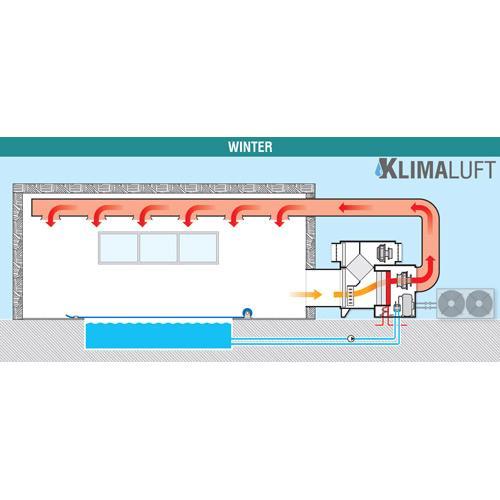 KLIMALUFT 0260 (SPR) Schwimmbad-Luftentfeuchter ist Teil der SPR-Reihe und in verschiedenen Modellen erhältlich. Die Luftentfeuchter der SPR-Reihe sind ideal für Schwimmbäder oder Wellness-Bereiche, die nicht nur entfeuchtet, sondern auch belüftet werden müssen, ohne dass die Wärme nach außen abgegeben wird. Das hocheffiziente Wärmerückgewinnungssystem garantiert eine Leistung von bis zu 80 %! KLIMALUFT 0260 (SPR) ist ein 2-in-1 Gerät mit einer Entfeuchtungsleistung von 268 Liter/Tag und einem Luftdurchsatz von 2.800 m³/h. Luftentfeuchter mit hoher Luftwechselrate. KLIMALUFT STR-Reihe wurde speziell für die Klimatisierung des Schwimmbadbereichs konzipiert - reguliert und kontrolliert nicht nur die Luftfeuchtigkeit, sondern auch die Umgebungstemperatur.