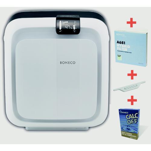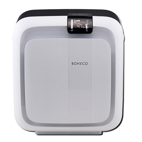 BONECO H680 Hybrid - Luftbefeuchter und Luftreiniger ist ein absolutes Multitalent und kann sowohl als Luftbefeuchter als auch Luftreiniger verwendet werden: 2-in-1 Hybrid System. Das innovative Befeuchtungs- und Filtersystem sorgt für eine Luftqualität, die der sauberen Luft in unberührter Natur sehr nahekommt. Mit einer Luftreinigungsleistung bis zu 205 m³/h und einer Befeuchtungsleistung bis zu 1 Liter / Stunde eignet dieser BONECO Hybrid Luftwäscher sich perfekt zum befeuchten oder reinigen der Raumluft in Räumen bis 100 m². Die im HYBRID-Filter integrierten HEPA- und Aktivkohlefilter beseitigen nahezu alle Pollen, Viren und absorbieren unangenehme Gerüche. Die Bedienung ist kinderleicht und zusätzliche Funktionen und Modi können einfach mittels LED Display (Digital Touch Panel) oder Fernbedienung gesteuert werden. BONECO - healthy air