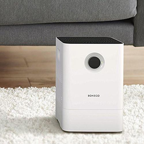 BONECO W200 Luftbefeuchter und Luftreiniger besticht mit seinem schlichten, modernen Design und seiner hohen Leistung. Konzipiert für Räume bis 50 m² / 125 m³ sorgt dieser auf dem Verdunstungsprinzip basierende Luftwäscher automatisch für die richtige Luftfeuchtigkeit und reinigt die Umgebungsluft in Wohn-, Schlaf-, Kinderzimmer oder Büro. Ideal für Asthmatiker, Allergiker und Menschen mit Atemwegsproblemen. Der BONECO W200 ist einfach in der Bedienung, Wartung und Reinigung. Die Komponenten, wie Tank oder Verdunstungselemente, sind wasch- und spülmaschinengeeignet und wer will, kann ätherische Duftöle verwenden. BONECO - healthy air