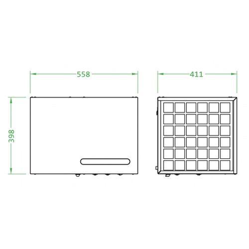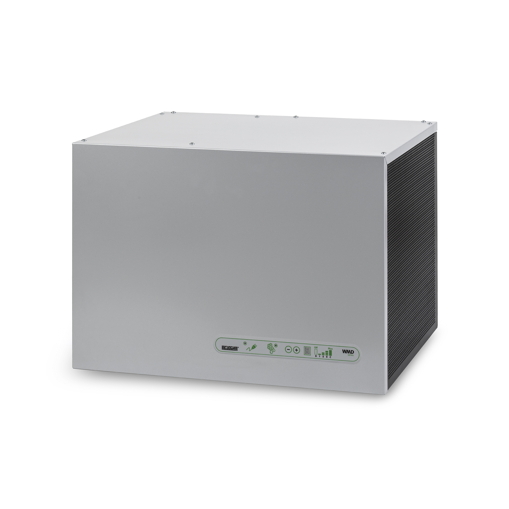 Cuoghi WMD 50 Industrieller Luftentfeuchter ist zur Wandmontage aus der WMD-Serie mit Festanschluss. Ein Profi-Entfeuchter für Bereiche bis zu 240 m² mit einer Entfeuchtungsleistung von 49,9 Liter pro Tag. Die Montage an der Wand ist dank der mitgelieferten Halterung unkompliziert. Mit einem Geräuschpegel von 56 dB(A) ist dieses Kühlkreislaufgerät sehr leise, verbraucht wenig Strom und ist serienmäßig mit einem Feuchtigkeits- und Temperatursensor ausgestattet. Das integrierte Heißgas-Modul (Frostschutz) ermöglicht die Entfeuchtung bereits ab einer Temperatur von 2 °C. Professionelle Luftentfeuchter der WMD-Serie sind Wandgeräte für Räume, in denen eine hohe Entfeuchtungskapazität erforderlich ist.