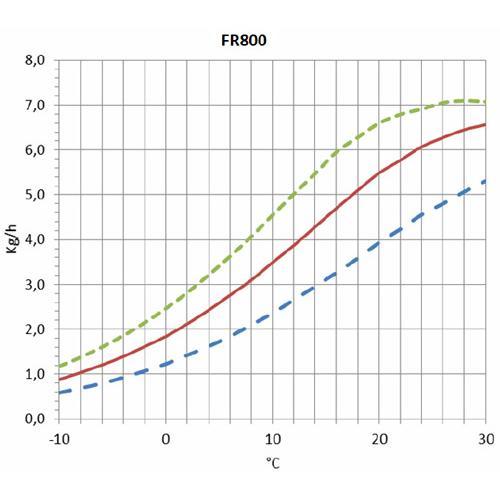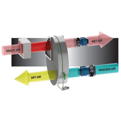 Fral FR850 Industrie Adsorptionstrockner arbeitet mit zwei Luftströmen, wobei der Hauptstrom die zu entfeuchtende Luft ist, während ein zweiter Strom - mit geringerem Durchfluss - zur Regeneration des Entfeuchtungsrotors verwendet wird. Zwei Ventilatoren im Inneren des Entfeuchters erzeugen diese beiden Luftströme, die den Rotor in entgegengesetzte Richtungen durchströmen. Der industrielle Adsorptions-Luftentfeuchter Fral FR850 hat eine Entfeuchtungsleistung von 4,8 kg/Stunde bei 20 °C und 60 % Luftfeuchtigkeit.