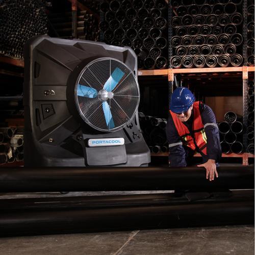 Der Portacool Jetstream™ 260 Verdunstungskühler ist ein energieeffizienter und mobiler Bio-Cooler für Räume bis 300 m². Er sorgt für Abkühlung dort wo sie benötigt wird und das ohne feste Installation oder Luftschläuche! Direkte Kühlung nach Befüllen mit Wasser (Kältemittel). Der Wassertank verfügt über ein Volumen von 227 Liter und schaltet sich automatisch ab, wenn der Tank fast leer ist. Die Funktionsweise des Portacool Jetstream™ 260 basiert auf dem Prinzip der adiabaten Verdunstung, der Kühlung der Umgebungsluft mit Wasser. Anwendungsbereiche sind beispielsweise die Industrie, Gewerbe, Fabrikhallen, Lagerhallen, Werkstätten, Landwirtschaft, Gartenbau, überall dort, wo eine herkömmliche Klimatisierung nicht praktisch oder zu teuer ist. Dank seiner kleinen Standfläche passt er auch auf kleinstem Raum. KUUL-Effekt: 26 AirSain - offizieller Vertriebspartner von PORTACOOL
