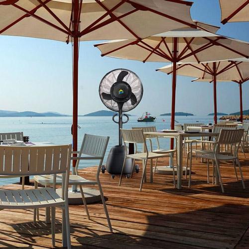 Star Progetti FRE326 Bio-Luftkühler ist ein tragbarer BIO-Lufkühler mit einer Reichweite von ca. 15 m. Er funktioniert nach dem natürlichen Prinzip der Wasserverdunstung zur Kühlung der Luft. Millionen von Wassermolekülen werden freigesetzt und die schnelle Verdunstung sorgt für eine Senkung der Umgebungstemperatur. Der integrierte Wassertank ermöglicht eine einfache Nutzung und die Bedienung ist kinderleicht: Regulierbare Lüftergeschwindigkeit (3-stufig), Zeitschaltuhr (Timer) und Einstellung der Zerstäubung. Der mobile Verdunstungskühler eignet sich für Räume bis 40 m² im gewerblichen oder privaten Innen- und Außenbereich wie Lagerhallen, Terrassen oder Schwimmbäder - bei einem Wasserverbrauch von 2,8 Litern pro Stunde.