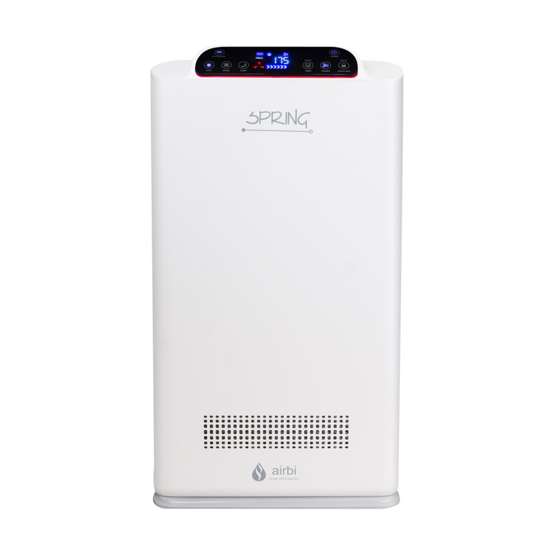 Airbi SPRING Luftreiniger zählt zu den multifunktionalen Luftreiniger, die mit modernster Technologie für eine effektive Luftreinigung sorgen. Der Airbi SPRING kombiniert mehrere bewährte Verfahren und verfügt über ein 7-Stufen-Filtersystem, einen Ionisator (entfernt kleine Verunreinigungen in der Luft) und eine UV-Lampe (zur Luftentkeimung). Der Airbi SPRING wurde speziell für Menschen mit Allergien und Atemwegserkrankungen entwickelt. Er ist ideal für den Einsatz in privaten und gewerblichen Räumen bis 50 m² (Leistung 320 m³/h). Er arbeitet flüsterleise und ist mit einem Nacht-Modus versehen, somit perfekt für die Reinigung der Luft in Ihrem Schlafzimmer oder Kinderzimmer. Airbi SPRING hilft Ihnen, um wieder tief durchatmen zu können.
