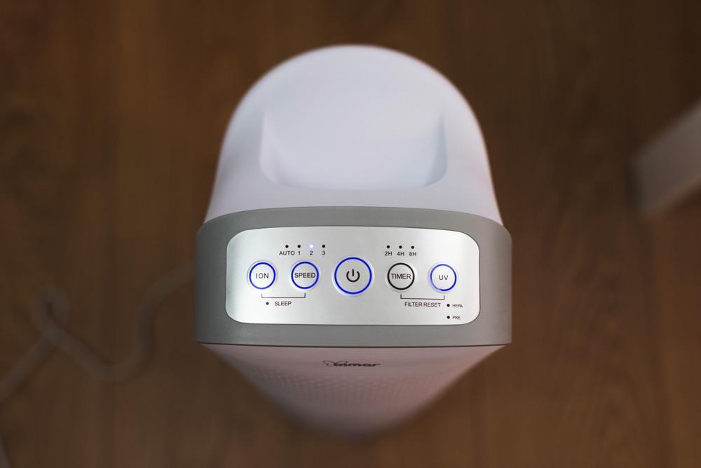 Der schlanke und mobile Bimar PA100 Luftreiniger sorgt mit seinem 3-Filter-System (Vorfilter, Aktiv-Kohlefilter und HEPA H13-Filter) in Kombination mit einer UV-Lampe (antibakteriel) und einem Ionisator für eine gesunde Umgebungsluft in Räumen bis 26 m². Seine Reinigungskapazität beträgt (CADR) von 220 m³ / Stunde und er entfernt 99,97 % aller Allegene Pollen, Haustierschuppen, Gerüche, Keime oder Schimmel. Ideal bei Allergien, verstopfter Nase, Husten, Asthma oder anderen Atemwegserkrankungen. Zur weiteren Ausstattung gehören ein Luftqualitätssensor (3 Farben), eine Zeitschaltuhr (2, 4 oder 8 Stunden), verschiedenen Betriebsmodi (Normal- oder Schlaf-Modus) und einem regulierbaren Luftstrom (MIN/MED/MAX oder AUTO). Bimar PA100 Luftwäscher für eine gesunde Luft daheim oder im Büro