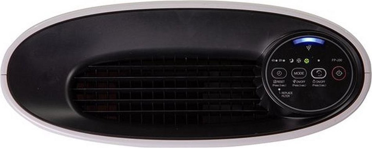 Sharp FP-J30EU Luftreiniger mit Plasmacluster-Ionisator für eine gesunde Luft Der Sharp FP-J30EU Luftreiniger ist kompakt und passt bei jedem Interieur. Er unterscheidet sich durch seine extrem minimalistische Form und Farbkombination (obere Teil ist schwarz und Gehäuse ist weiß) von anderen Luftreinigern. Auch bei diesem Modell durfte die Sharp-Plasmacluster-Technologie nicht fehlen, die zusätzlich durch den Clean-ION-Shower unterstützt wird. Der Sharp-Luftwäscher eignet sich für kleinere Räume bis 22 m² und hat einen Luftdurchsatz von 180 m³/h. Die spezielle J-Tech Inverter-Technologie garantiert einen einzigartig niedrigen Stromverbrauch 4-Filterstufen: 1. Der Vorfilter: fängt größere Schmutzpartikel auf (Krümel, Tier- und Menschenhaare, Pollen, Staub usw.). Dieser Filter wird nicht gewechselt, sondern muss nur regelmäßig entstaubt und gereinigt werden. 2. Der Aktivkohlefilter: eliminiert unangenehme Gerüche (z.B. Tabakrauch, Tiergeruch, Müllgestank) und flüchtige organische Verbindungen (Benzol, Formaldehyd, Xylen, Benzo[a]pyren). 3. Der HEPA-H13-Filter: fängt Viren, Bakterien, Schimmelsporen und mechanische Luftverschmutzung auf, darunter PM2,5- und PM10-Feinstaub (die Hauptbestandteile von Smog). 4. Der Plasmacluster-Ionisator: Hervorragende Ionentechnologie, die sogar winzige Partikel mit einer Größe von 0,01 Mikron (Viren, Bakterien oder Allergene) eliminiert. Die vom Generator erzeugten Ionen neutralisieren Krankheitserreger wie Viren, Bakterien und Pilze. Plasmacluster-Technologie Die Plasmacluster-Technologie reinigt die Luft von allen Arten von Krankheitserregern. Der spezielle Plasmacluster-Ionengenerator erzeugt positiv und negativ geladene Ionen und gibt diese an die Umgebung ab. Diese Ionen neutralisieren Mikroorganismen. So wird die Luft frei von Viren, Bakterien, Schimmelsporen, Schimmelpilzen und Allergenen. Der Luftreiniger Sharp FP-J30EU verwendet einen Plasmacluster High-Density 7000 Ionengenerator. Die Effektivität dieser Technologie bei der Beseitigung von Viren und Sporen von Pilzen erreicht 99,9 % (bestätigt durch Test der LSI Medience Corporation). Die Plasmacluster-Technologie erhielt bereits viele Auszeichnungen und verschafft Millionen von Allergikern weltweit Linderung. Der Clean-Ion-Shower-Modus muss erwähnt werden: in diesem Modus werden Ionen in einer hohen Konzentration und einem starken Luftstrahl emittiert. Dieser Vorgang dauert 60 Minuten und erhöht die Effektivität der Plasmacluster-Ionen, danach kehrt das Gerät in den vorherigen Arbeitsmodus zurück. Ein einzigartiges Luftzirkulationssystem Plasmacluster-Ionen eliminieren sowohl positive als auch negative statische Elektrizität (negative Ionen reduzieren positive Ladungen, positive Ionen reduzieren negative Ladungen). Hierdurch wird verhindert, dass sich Staub an Wänden und anderen Flächen haftet. Ein starker Luftstrahl in einem 20°-Winkel und das einzigartige Luftzirkulationssystem eliminiert den Staub und die Luft wird noch effizienter gereinigt. Der Luftreiniger Sharp FP-J30EU wird über ein kleines Bedienfeld bedient. Sie können die gewünschte Lüftergeschwindigkeit auswählen: MAX (hoch), MED (mittel) oder SLEEP (Nachtmodus). Im Schlafmodus schaltet der Lüfter auf Minimum, arbeitet flüsterleise (nur 23 dB(A)) und reguliert die Lichtintensität des Bedienfeldes. Der Sharp FP-J30EU ist somit der perfekte Luftreiniger für das Schlaf- und Kinderzimmer. Merkmale: Für Räume bis 22 m² Luftdurchsatz: 180 m³/h Plasmacluster-Ionisator: bedeutend bessere Luftqualität Ein- und Ausschalten der Plasmacluster-Ionen Clean-Ion-Shower-Modus: eine stark konzentrierte Ionenemission 3-Filtersystem: Vorfilter, HEPA H13-Filter, Aktivkohlefilter Filterwechselanzeige 3 Lüftergeschwindigkeiten: MAX / MED / Sleep Anzeige der Ventilatorgeschwindigkeit Automatischer Neustart (Auto Restar) Zeitschaltuhr (Timer): automatisch Ausschalten nach 4 oder 8 Stunden AUTO-Modus Nachtmodus Einstellbare Lichtintensität der Anzeigen: Regulieren der Helligkeit des Bedienfeldes Einfach zu transportieren: integrierte Transportgriffe Getestet und zugelassen durch die British Allergy Foundation und eine wahre Wohltat für Menschen mit Atemwegsproblemen.