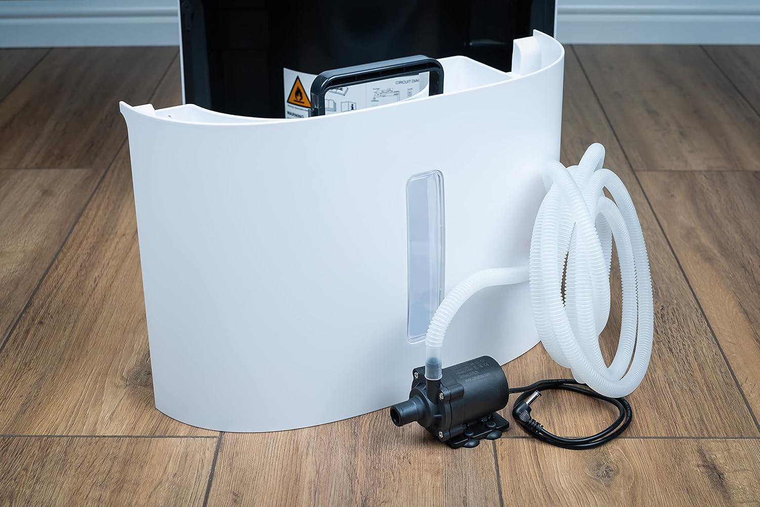 Der MeacoDry Arete ist auch mit einer integrierten Hebepumpe erhältlich als MeacoDry Arete® LiPu (Lifting Pump/Kondensatpumpe). Sollten Sie Ihren Luftentfeuchter in einem Raum verwenden wollen, in dem Sie den Tank nicht täglich entleeren können, sorgt diese Ablaufpumpe dafür, dass das Kondenswasser automatisch zu einem Waschbecken oder einem anderen Abfluss geleitet wird. Damit kann der Luftentfeuchter kontinuierlich weiterarbeiten, ohne dass Sie ihn manuell entleeren müssen. Die Pumpe ermöglicht auch das Hochpumpen und Ableiten von Feuchtigkeit aus einem tiefer gelegenen Raum, beispielsweise einem Keller. Die maximale Fallhöhe beträgt 2,5 Meter.