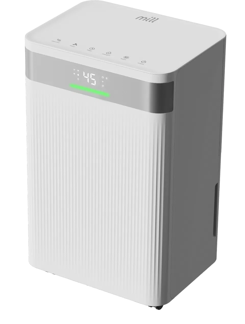Mill MDH20 Luftentfeuchter ist kompakt und effizient. Er entfernt überschüssige Feuchtigkeit zuverlässig und sorgt so in Bereichen bis 30 m² für ein angenehmes Raumklima. Mit einer Entfeuchtungsleistung von 20 Litern pro Tag und einer Leistungsaufnahme von nur 420 Watt arbeitet er besonders energieeffizient. Das moderne LED-Touchdisplay ermöglicht eine intuitive Bedienung und zeigt die aktuelle Luftfeuchtigkeit an. Zudem stehen zwei Lüfterstufen und drei Betriebsmodi (Trocknen, Auto, Sleep) zur Auswahl. Der 4-Liter-Wassertank lässt sich leicht entleeren und für den Dauerbetrieb ist ein Ablaufschlauch im Lieferumfang enthalten. Zur weiteren Ausstattung gehören ein waschbarer Filter, eine Timer-Funktion sowie eine Kindersicherung.