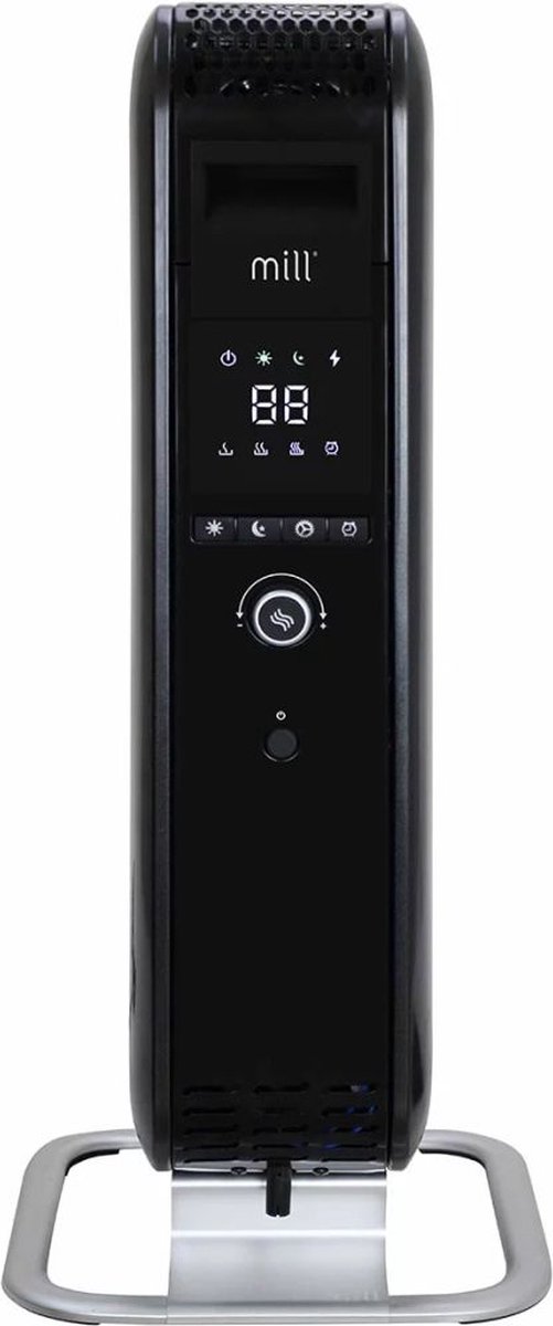 Mill AB-H1000DN Ölradiator - innovativer Öl-Heizkörper mit modernster Technologie. Mill AB-H1000DN Ölradiator passt mit seinem eleganten skandinavischen Design bei jedem Interieur. Er sorgt für eine angenehme Wärme, ohne die Luft auszutrocknen - ideal für Personen mit Allergien oder Atemwegserkrankungen. Die Firma Mill mit Sitz im Norden von Europa hat natürlich viel Erfahrung mit langen und kalten Wintern. Kalte Luft wird erwärmt, während diese durch den Heizkörper strömt, die warme Luft nimmt an Volumen zu und steigt nach oben, wodurch wiederum Platz, für die nachströmende kalte Luft geschaffen und der Raum effizient aufgeheizt wird. Der Mill AB-H1000DN gehört zur neuesten Generation ölgefüllter Heizkörper und sorgt mit einer Leistung von max. 1000 Watt für eine wohlige Wärme in Räumen bis 16 m². Das Gerät ist mit einer modernen Tag-/Nachtfunktion ausgestattet, die es Ihnen ermöglicht, die Temperatur zu senken, wenn Sie nicht anwesend sind. Auf diese Weise können Sie sogar bis zu 25 % Ihres Stromverbrauchs einsparen. Der formschöne Mill-Ölradiator ist einfach zu bedienen und mit einem übersichtlichen LED-Display ausgestattet. Zur weiteren Ausstattung des mit ölgefüllten Heizkörpers gehören 3 Leistungsstufen, Überhitzungsschutz, Anti-Kipp-Sicherung und die Mill Heat-Boost Technology. Was unterscheidet Mill Ölradiator von herkömmlichen Öl-Heizkörper? (Mill Heat Boost Technology) Aufgrund des besonderen Designs haben die Mill-Ölradiatoren eine geschlossene Struktur um die mit ölgefüllten Lamellen und hierdurch ergibt sich eine andere Wärmeabgabe. Die Konstruktion des Heizkörpers zwingt die warme Luft durch die warmen Lamellen aufzusteigen und erzielt hiermit eine höhere Geschwindigkeit der erwärmten Luft und eine schneller und effizientere Wärmeverteilung im Raum. Sorgt für eine um 29 % schnellere Erwärmung des Raums im Vergleich zu herkömmlichen Ölradiatoren. Dieser wunderschöne und mobile Design-Radiator ist erhältlich in 2 Farben: Schwarz oder Weiß. Merkmale: Für Räume bis 16 m² Radiator mit bis zu 1000 Watt Leistung 3 Leistungsstufen: 400 – 600 – 1000 Watt Mill Heat Boost Technology Leiser Betrieb Einfache Bedienung LCD-Anzeige Tag-/Nachtprogramm Energieeffizient Automatische Temperaturkontrolle Elektronisches Thermostat Kippschutzvorrichtung mit automatischer Abschaltung Überhitzungsschutz: automatische Abschaltung bei Überhitzung Aluminiumfüße Erhältlich in 2 Farben: Schwarz oder Weiß