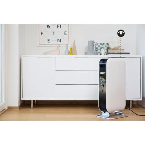 Mill AB-H1500DN Ölradiator - innovativer Öl-Heizkörper mit integriertem WiFi (WLAN) Mill AB-H1500DN Ölradiator passt mit seinem eleganten skandinavischen Design bei jedem Interieur. Er sorgt für eine angenehme Wärme, ohne die Luft auszutrocknen - ideal für Personen mit Allergien oder Atemwegserkrankungen. Die Firma Mill mit Sitz im Norden von Europa hat natürlich viel Erfahrung mit langen und kalten Wintern. Kalte Luft wird erwärmt, während diese durch den Heizkörper strömt, die warme Luft nimmt an Volumen zu und steigt nach oben, wodurch wiederum Platz, für die nachströmende kalte Luft geschaffen und der Raum effizient aufgeheizt wird. Der Mill AB-H1500DN gehört zur neuesten Generation ölgefüllter Heizkörper und sorgt mit einer Leistung von max. 1500 Watt für eine wohlige Wärme in Räumen bis 24 m² und mit dem integrierten WiFi (WLAN) wird auch die Bedienung noch einfacher! Hierdurch wird eine Regelung des Öl-Heizkörpers auch auf Abstand ermöglicht. Mit der Millheat-APP können Sie Ihre Heizgeräte von jedem Ort mit einem Knopfdruck steuern. Einfach Ihren Tagesablauf in der eintragen und der Rest wird automatisch geregelt (anpassen der Temperatur). Jeder in der APP eingetragene Heizkörper hat seine eigene Position (Haus/Raum). Sie können aus weiteren Einstellungsmöglichkeiten wählen: Wochenprogramm mit verschiedenen vorprogrammierten Programmen (Comfort, Sleep, Away) Anpassung der Programme per Raum/Heizkörper/Haus Urlaubsmodus - der APP erhöht automatisch die Temperatur in Ihrer Wohnung bevor Sie wieder zu Hause sind Funktion "Offenes Fenster" - sobald die Temperatursensoren einen plötzlichen Temperaturabfall feststellen, schaltet die Heizung sich automatisch ab - und nach 10 Minuten wieder automatisch ein. App hat Zugang für mehrere Benutzer Das Gerät ist mit einer modernen Tag-/Nachtfunktion ausgestattet, die es Ihnen ermöglicht, die Temperatur zu senken, wenn Sie nicht anwesend sind. Auf diese Weise können Sie sogar bis zu 25 % Ihres Stromverbrauchs einsparen. Der formschöne Mill-Ölradiator ist einfach zu bedienen und mit einem übersichtlichen LED-Display ausgestattet. Zur weiteren Ausstattung des mit ölgefüllten Heizkörpers gehören 3 Leistungsstufen, Überhitzungsschutz, Anti-Kipp-Sicherung und die Mill Heat-Boost Technology. Was unterscheidet Mill Ölradiator von herkömmlichen Öl-Heizkörper? (Mill Heat Boost Technology) Aufgrund des besonderen Designs haben die Mill-Ölradiatoren eine geschlossene Struktur um die mit ölgefüllten Lamellen und hierdurch ergibt sich eine andere Wärmeabgabe. Die Konstruktion des Heizkörpers zwingt die warme Luft durch die warmen Lamellen aufzusteigen und erzielt hiermit eine höhere Geschwindigkeit der erwärmten Luft und eine schneller und effizientere Wärmeverteilung im Raum. Sorgt für eine um 29 % schnellere Erwärmung des Raums im Vergleich zu herkömmlichen Ölradiatoren. Dieser wunderschöne und mobile Design-Radiator ist erhältlich in der Farbe Mill Weiß. Merkmale: Für Räume bis 24 m² Radiator mit bis zu 1500 Watt Leistung 3 Leistungsstufen: 600 – 900 – 1500 Watt Integrierte WLAN (WiFi) Millheat-APP Mill Heat Boost Technology Leiser Betrieb Einfache Bedienung LCD-Anzeige Tag-/Nachtprogramm Energieeffizient Automatische Temperaturkontrolle Mechanisches Thermostat Kippschutzvorrichtung mit automatischer Abschaltung Überhitzungsschutz: automatische Abschaltung bei Überhitzung Aluminiumfüße Erhältlich in der Farbe Mill Weiß