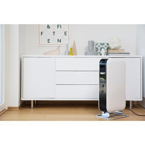 Mill AB-H1500DN Ölradiator - innovativer Öl-Heizkörper mit moderner Technologie. Mill AB-H1500DN Ölradiator passt mit seinem eleganten skandinavischen Design bei jedem Interieur. Er sorgt für eine angenehme Wärme, ohne die Luft auszutrocknen - ideal für Personen mit Allergien oder Atemwegserkrankungen. Die Firma Mill mit Sitz im Norden von Europa hat natürlich viel Erfahrung mit langen und kalten Wintern. Kalte Luft wird erwärmt, während diese durch den Heizkörper strömt, die warme Luft nimmt an Volumen zu und steigt nach oben, wodurch wiederum Platz, für die nachströmende kalte Luft geschaffen und der Raum effizient aufgeheizt wird. Der Mill AB-H1500DN gehört zur neuesten Generation ölgefüllter Heizkörper und sorgt mit einer Leistung von max. 1500 Watt für eine wohlige Wärme in Räumen bis 22 m². Das Gerät ist mit einer modernen Tag-/Nachtfunktion ausgestattet, die es Ihnen ermöglicht, die Temperatur zu senken, wenn Sie nicht anwesend sind. Auf diese Weise können Sie sogar bis zu 25 % Ihres Stromverbrauchs einsparen. Der formschöne Mill-Ölradiator ist einfach zu bedienen und mit einem übersichtlichen LED-Display ausgestattet. Zur weiteren Ausstattung des mit ölgefüllten Heizkörpers gehören 3 Leistungsstufen, Überhitzungsschutz, Anti-Kipp-Sicherung und die Mill Heat-Boost Technology. Was unterscheidet Mill Ölradiator von herkömmlichen Öl-Heizkörper? (Mill Heat Boost Technology) Aufgrund des besonderen Designs haben die Mill-Ölradiatoren eine geschlossene Struktur um die mit ölgefüllten Lamellen und hierdurch ergibt sich eine andere Wärmeabgabe. Die Konstruktion des Heizkörpers zwingt die warme Luft durch die warmen Lamellen aufzusteigen und erzielt hiermit eine höhere Geschwindigkeit der erwärmten Luft und eine schneller und effizientere Wärmeverteilung im Raum. Sorgt für eine um 29 % schnellere Erwärmung des Raums im Vergleich zu herkömmlichen Ölradiatoren. Dieser wunderschöne und mobile Design-Radiator ist erhältlich in der Farbe Mill Weiß. Merkmale: Für Räume bis 22 m² Radiator mit bis zu 1500 Watt Leistung 3 Leistungsstufen: 600 – 900 – 1500 Watt Mill Heat Boost Technology Leiser Betrieb Einfache Bedienung LCD-Anzeige Tag-/Nachtprogramm Energieeffizient Automatische Temperaturkontrolle Elektronisches Thermostat Kippschutzvorrichtung mit automatischer Abschaltung Überhitzungsschutz: automatische Abschaltung bei Überhitzung Aluminiumfüße Erhältlich in der Farbe Mill Weiß