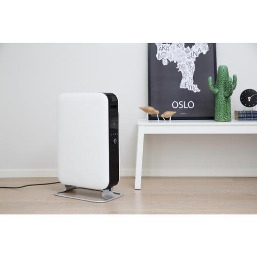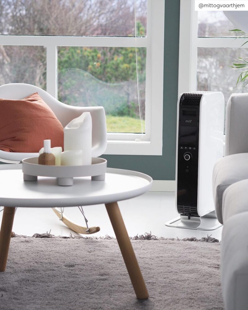 Mill AB-H2000DN Ölradiator - innovativer Öl-Heizkörper mit modernster Technologie. Mill AB-H2000DN Ölradiator passt mit seinem eleganten skandinavischen Design bei jedem Interieur. Er sorgt für eine angenehme Wärme, ohne die Luft auszutrocknen - ideal für Personen mit Allergien oder Atemwegserkrankungen. Die Firma Mill mit Sitz im Norden von Europa hat natürlich viel Erfahrung mit langen und kalten Wintern. Kalte Luft wird erwärmt, während diese durch den Heizkörper strömt, die warme Luft nimmt an Volumen zu und steigt nach oben, wodurch wiederum Platz, für die nachströmende kalte Luft geschaffen und der Raum effizient aufgeheizt wird. Der Mill AB-H2000DN gehört zur neuesten Generation ölgefüllter Heizkörper und sorgt mit einer Leistung von max. 2000 Watt für eine wohlige Wärme in Räumen bis 28 m². Das Gerät ist mit einer modernen Tag-/Nachtfunktion ausgestattet, die es Ihnen ermöglicht, die Temperatur zu senken, wenn Sie nicht anwesend sind. Auf diese Weise können Sie sogar bis zu 25 % Ihres Stromverbrauchs einsparen. Der formschöne Mill-Ölradiator ist einfach zu bedienen und mit einem übersichtlichen LED-Display ausgestattet. Zur weiteren Ausstattung des mit ölgefüllten Heizkörpers gehören 3 Leistungsstufen, Überhitzungsschutz, Anti-Kipp-Sicherung und die Mill Heat-Boost Technology. Was unterscheidet Mill Ölradiator von herkömmlichen Öl-Heizkörper? (Mill Heat Boost Technology) Aufgrund des besonderen Designs haben die Mill-Ölradiatoren eine geschlossene Struktur um die mit ölgefüllten Lamellen und hierdurch ergibt sich eine andere Wärmeabgabe. Die Konstruktion des Heizkörpers zwingt die warme Luft durch die warmen Lamellen aufzusteigen und erzielt hiermit eine höhere Geschwindigkeit der erwärmten Luft und eine schneller und effizientere Wärmeverteilung im Raum. Sorgt für eine um 29 % schnellere Erwärmung des Raums im Vergleich zu herkömmlichen Ölradiatoren. Dieser wunderschöne und mobile Design-Radiator ist erhältlich in der Farbe Mill Weiß. Merkmale: Für Räume bis 28 m² Radiator mit bis zu 2000 Watt Leistung 3 Leistungsstufen: 800 – 1200 – 2000 Watt Mill Heat Boost Technology Leiser Betrieb Einfache Bedienung LCD-Anzeige Tag-/Nachtprogramm Energieeffizient Automatische Temperaturkontrolle Elektronisches Thermostat Kippschutzvorrichtung mit automatischer Abschaltung Überhitzungsschutz: automatische Abschaltung bei Überhitzung Aluminiumfüße Erhältlich in der Farbe Mill Weiß