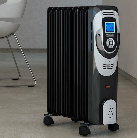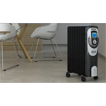 Olimpia Splendid CaldoRad 7 Digital Ölradiator sorgt für eine gleichmäßige, angenehme Wärme in einem Raum bis zu 20 m². Die Olimpia Splendid-Ölradiatoren sind sehr leise und wartungsfrei (werden mit diathermischem Mineralöl betrieben). Er ist energieeffizient und arbeiten sehr leise. Die Bedienung ist kinderleicht, mittels digitaler Steuerung (digitales Bedienelement und LED-Anzeige). Die Caldorad Heizkörper wurden so konzipiert, dass sie die eingestellte Temperatur über einen längeren Zeitraum gewährleisten. Mit seinen 2 Leistungsstufen (700 - 1500 Watt) und dem 24-Stunden-Timer (Zeitschaltuhr) garantiert er Komfort bei einer hohen Leistung mit geringem Verbrauch. Dank der praktischen, kratzfesten Rollen und des oberen Griffs lässt sich das Gerät leicht transportieren.