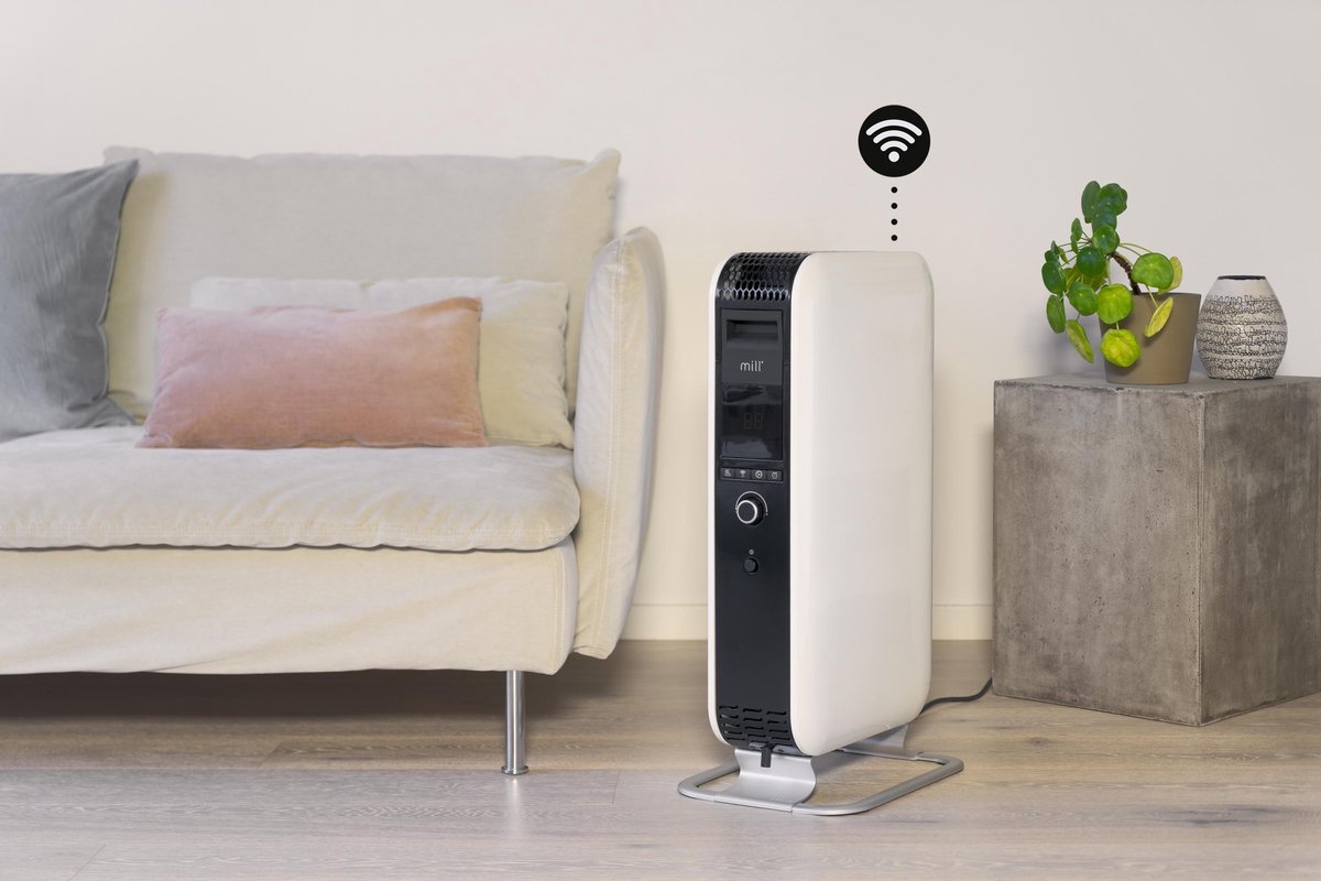 Mill Gentle Air 2000WIFI3 Ölradiator mit integriertem WiFi (WLAN) Mill Gentle Air 2000WIFI3 Ölradiator sorgt mit seiner Leistung von 2000 Watt für eine angenehme Wärme in Räumen bis 28 m². Die Bedienung erfolgt manuell über ein stilvolles Touch-Bedienfeld oder über WiFi (Millheat-App). Der mit Öl gefüllte Heizkörper ist mit einem integrierten WiFi ausgestattet und stellt mittels Bluetooth eine direkte Verbindung zu einem WiFi-Netzwerk her. Wie der Name schon sagt, ist er Mill Gentle Air eine schonende Wärmequelle, die weder Staub verbrennt noch die Raumluft austrocknet. Millheat-App: Hilft Ihnen, Ihre Heizung mit nur einem Knopfdruck auf Ihrer Millheat App zu kontrollieren. Der App kann weltweit verwendet werden und ermöglicht die Regulierung mehrerer Heizungen. Die App ist kostenlos und einfach auf Ihrem Smartphone oder Tablet zu installieren. Nach dem geplanten Update im Herbst 2022 wird das Heizgerät auch kompatibel mit Google Assistant, Alexa und Apple HomeKit sein. Was unterscheidet Mill Ölradiator von herkömmlichen Öl-Heizkörper? (Mill Heat Boost Technology) Das besondere Design der Mill-Ölradiatoren, eine geschlossene Struktur um die mit ölgefüllten Lamellen, ermöglicht eine andere Wärmeabgabe. Die Konstruktion des Heizkörpers zwingt die warme Luft durch die warmen Lamellen aufzusteigen und erzielt hiermit eine höhere Geschwindigkeit der erwärmten Luft und eine schneller und effizientere Wärmeverteilung im Raum. Sorgt für eine um 29 % schnellere Erwärmung des Raums im Vergleich zu herkömmlichen Ölradiatoren. Bluetooth ermöglicht eine automatische Verbindung mit Ihrem WLAN-Netzwerk, unabhängig vom Routertyp OTA (OVER THE AIR): Nützliches Feature - Software-Updates werden automatisch durchgeführt, damit Sie Ihre Heizung immer auf dem neuesten Stand haben. Bedarfsgerechtes Heizen - der Schlüssel zur Energieeinsparung! Das Heizgerät erwärmt den Raum so, dass die gewünschte Temperatur zu einer bestimmten Zeit erreicht wird. Das Heizgerät lernt, wie schnell/langsam die Temperatur im Raum mit der Zeit steigt/senkt. Auf diese Weise weiß es, wann es mit dem Heizen beginnen muss, um die gewünschte Temperatur zu dem von Ihnen in der App festgelegten Zeitpunkt zu erreichen. Open-Window-Funktion: Wird ein Fenster geöffnet (plötzlicher Temperaturabfall) schaltet das Heizgerät sich automatisch aus. Merkmale: Für Räume bis 28 m² Ölradiator mit einer Leistung bis zu 2000 Watt 3 Leistungsstufen: 800 – 1200 – 2000 Watt Mill Heat Boost Technology Integriertes WiFi (WLAN) Manuelle Bedienung oder via Millheat-APP Kinderschutz: Tastensperre möglich (via APP oder manuell) Open-Window-Funktion: Gewerbliches Schloss für Vermieter Optional: Verwendung von Mill Sense für eine präzisere Temperaturregelung Leiser und sicherer Betrieb Energieeffizient und intelligent Automatische Temperaturkontrolle Mechanisches Thermostat Kippschutzvorrichtung mit automatischer Abschaltung Überhitzungsschutz: automatische Abschaltung bei Überhitzung Aluminiumfüße Farbe: Mill Weiß Optional: Verwendung von Mill Sense für eine noch präzisere Temperaturregelung