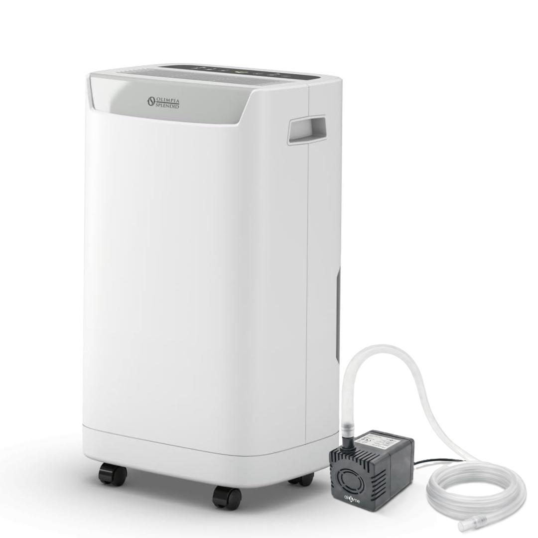 Optional ist der Olimpia Splendid S1 16P mit einer Kondensatpumpe erhältlich. Diese sorgt dafür, dass das Kondenswasser automatisch zu einem Abfluss, z. B. einem Waschbecken, geleitet wird. So kann das Gerät kontinuierlich betrieben werden, ohne den Tank manuell entleeren zu müssen. Dank der integrierten Pumpe kann das Wasser auch aus tiefer gelegenen Räumen, wie einem Keller, nach oben abgeführt werden. Die maximale Förderhöhe beträgt 3 Meter.