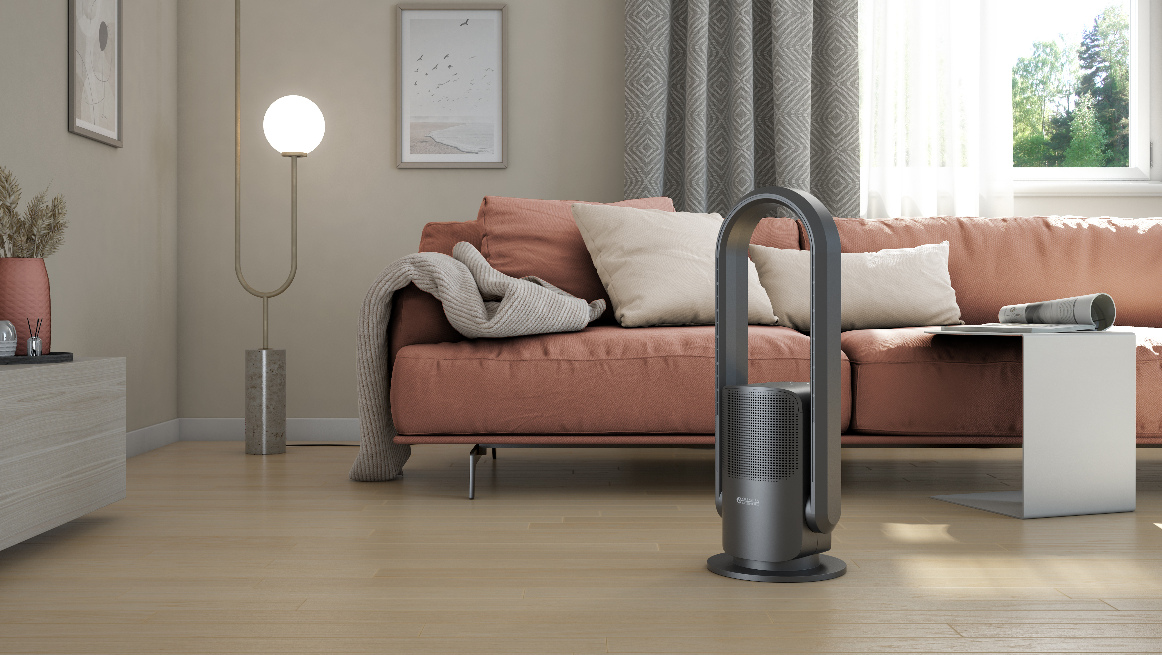 Olimpia Splendid Futura Luftreiniger - reinigt die Luft, erwärmt und ventiliert Olimpia Splendid Futura Luftreiniger ist mehr als nur ein Luftwäscher. Futura ist eine multifunktionale Lösung, die nicht nur für saubere Luft sorgt, sondern auch Komfort und eine bessere Verteilung der Luft in Räumen bis 10 m². Dieses 3-in-1 Gerät, reinigt die Luft (CADR 48 m³/h), sorgt für eine angenehme Wärme (Heizleistung 2000 Watt) und ventiliert (Kühlen 10 m²). Der Futura kann manuell bis zu 15° geneigt (gekippt) werden und ist mit einer automatischen Oszillation von 80° (Schwenkbasis) ausgestattet. Hierdurch wird die kühle oder warme, gereinigte Luft besser im Raum verteilt. Zur weiteren Ausstattung zählen die 3 Filterstufen (Vorfilter, Aktivkohlefilter und HEPA H14-Filter) und eine keimtötende UV-C-Lampe. Die Luft wird gereinigt und sterilisiert (Mikroorganismen abgetötet). Ein Gleichstrommotor mit einer Leistung von 2000 Watt mit Keramikwiderstand ermöglicht eine gleichmäßige und konstante Verteilung der Wärme. (Keramiktechnologie). Kühlen erfolgt mithilfe des integrierten Ventilators. Die Bedienung ist einfach mittels Touchscreen auf dem Display, der mitgelieferten Fernbedienung oder via APP (OS Home App) oder Sprachsteuerung. Futura verfügt über ein integriertes Wi-Fi und ist kompatibel mit den meisten Sprachsteuerungen. Merkmale: Räume bis 10 m² 3-in-1: Heizen-Kühlen-Filtern CADR 48 m³/h Heizleistung 2000 Watt Kühlen 10 m² Neigung und Oszillation: Bis zu 15° manuelle Neigung und 80° automatisches Schwenken Touchscreen-Display für eine einfache Bedienung mit Temperaturanzeige Vorfilter Aktivkohlefilter HEPA-H14-Filter: mit einer Effizienz von 99,99 % bei Partikeln bis zu 0,3 Mikron UV-Lampe: keimtötend, sterilisiert die Luft und vernichtet Mikroorganismen SLEEP / Turbo Funktion Zeitschaltuhr: 1 - 8 Stunden Keramiktechnologie: 2000 Watt-DC-Motor mit Keramikwiderstand für eine gleichmäßige und konstante Wärmeverteilung (Heizen) Integriertes Wi-Fi und kompatibel mit den gängigsten Sprachsteuerungen Inklusive Fernbedienung, zusätzlich steuerbar via App und Voice Control