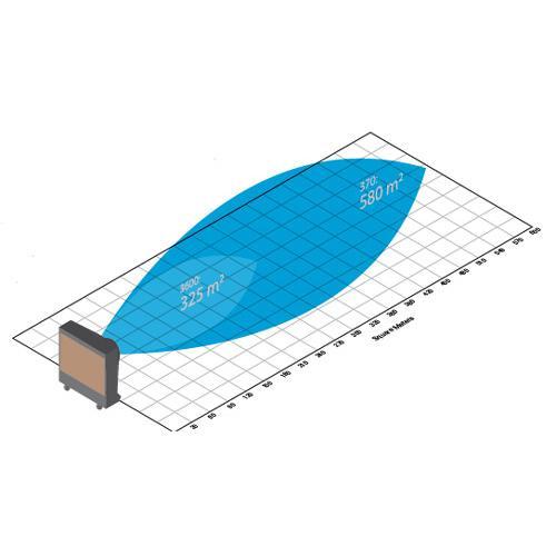 Portacool Hurricane™ 360 ist ein echtes Kühlwunder! Dieser adiabatische Luftkühler kombiniert hohe Geschwindigkeit mit modernster (patentierter) Kühltechnologie. Der Energieverbrauch ist niedrig und als Kältemittel wird ausschließlich Wasser verwendet. Ein adiabatischer Kühler kühlt die Umgebungsluft mit Wasser (Verdunstungskühler) und ist darum sehr umweltfreundlich. Der Portacool Hurricane™ 360 tragbare Verdunstungskühler ist konzipiert für den Einsatz in großen Räumen (bis 325 m²) und kann sofort nach Befüllung des Wassertankes (253 Litern) verwendet werden. Dieser Portacool Verdunstungskühler wurde für den Einsatz in extremen Umgebungsbedinungen entwickelt und sein Gehäuse ist äußerst robust, mit stabilen Rollen und erfordert wenig Wartung. Zur weiteren Ausstattung gehören eine digitale Steuerkonsole, eine Wasserstandsanzeige, Trockenlaufschutz und eine regulierbare Lüftergeschwindigkeit. Selbstverständlich verfügt der Adiabatic Hurricane™ 360 über vier Portacool Cat5 Air Boosters™, die einen zusätzlichen Luftstrom für maximalen Kühlkomfort liefern. Weiters ist jeder BIO-Cooler van Portacool mit der patentierten KUUL™ Komfort-Verdunstungsmatte ausgestattet. Der KUUL-Effekt (= Volume + Speed + Efficiency) gibt an, wieviel Komfort der jeweilige Portacool-Aircooler bietet. Anwendungsbereiche: Industrie, gewerblichen, aber auch privaten Räumlichkeiten: Garagen, Lagerhallen, Werkstätten, Sportanlagen und sogar Außenbereiche. Merkmale: Für Räume bis 325 m² Mobiler Verdunstungskühler mit 4 versperrbaren Rädern Automatische Pumpenabaschaltung Patentierte Cat5 Air Boosters™ Filter: Patentiert/KUUL™ Verdunstungsmatte Wassertank 253 Liter Niedrige Kosten Kältemittel: Wasser Keine Installationskosten - sofort einsetzbar Einfach zu bedienen und nahezu wartungsfrei KUUL Effect: 27 PORTACOOL, WENN ES UM IHREN KOMFORT GEHT. AirSain - offizieller Vertriebspartner von PORTACOOL