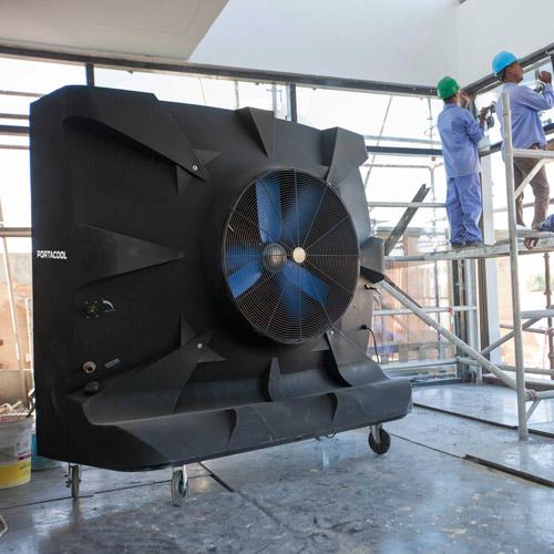 Die Portacool Hurricane™ 360 ist ein adiabatischer Luftkühler für große Räume (bis 325 m²). Energieeffiziente und mobile Kühlung mit diesem leistungsstarken Verdunstungskühler. Keine Festinstallation, keine Luftschläuche, direkte Kühlung nach Befüllung mit Wasser. Portacool Hurricane™ 360 ist ein mobiler Luftkühler für den Einsatz in Unternehmen, Lagerhallen, Sportanlagen und Außenbereichen. Portacool Luftkühler sind extrem energieeffizient! Ein adiabatischer Luftkühler kühlt die Umgebungsluft mit Wasser. Der Hurricane™ 360 ist mit einem Wassertank von 253 Litern ausgestattet und schaltet sich automatisch ab, wenn der Tank fast leer ist. KUUL-Effekt: 27 AirSain - offizieller Vertriebspartner von PORTACOOL