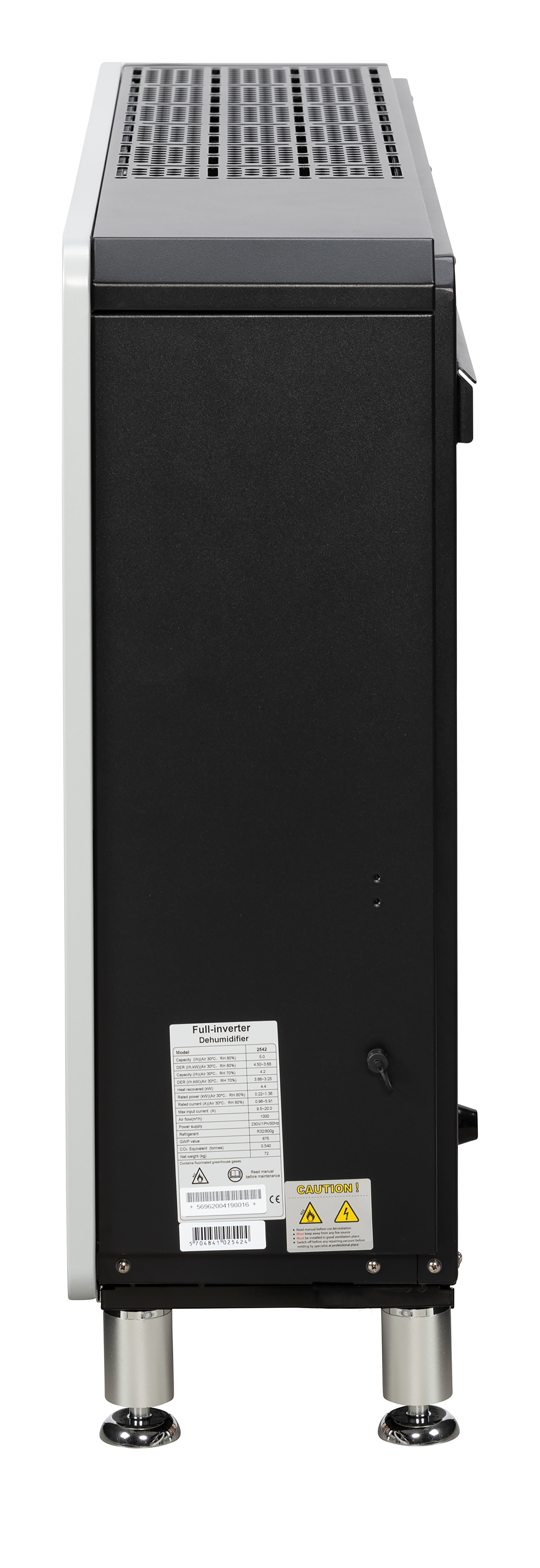 "Full Inverter"-Technologie was ist das? Full Inverter“ bedeutet, dass sowohl der Kompressor als auch der Ventilator mit einer 100 % automatischen Frequenzregelung ausgestattet sind. Der Luftentfeuchter passt sich ständig an die relative Luftfeuchtigkeit im Raum an und ermöglicht eine optimale Energieausnutzung bei einem extrem niedrigen Geräuschpegel.