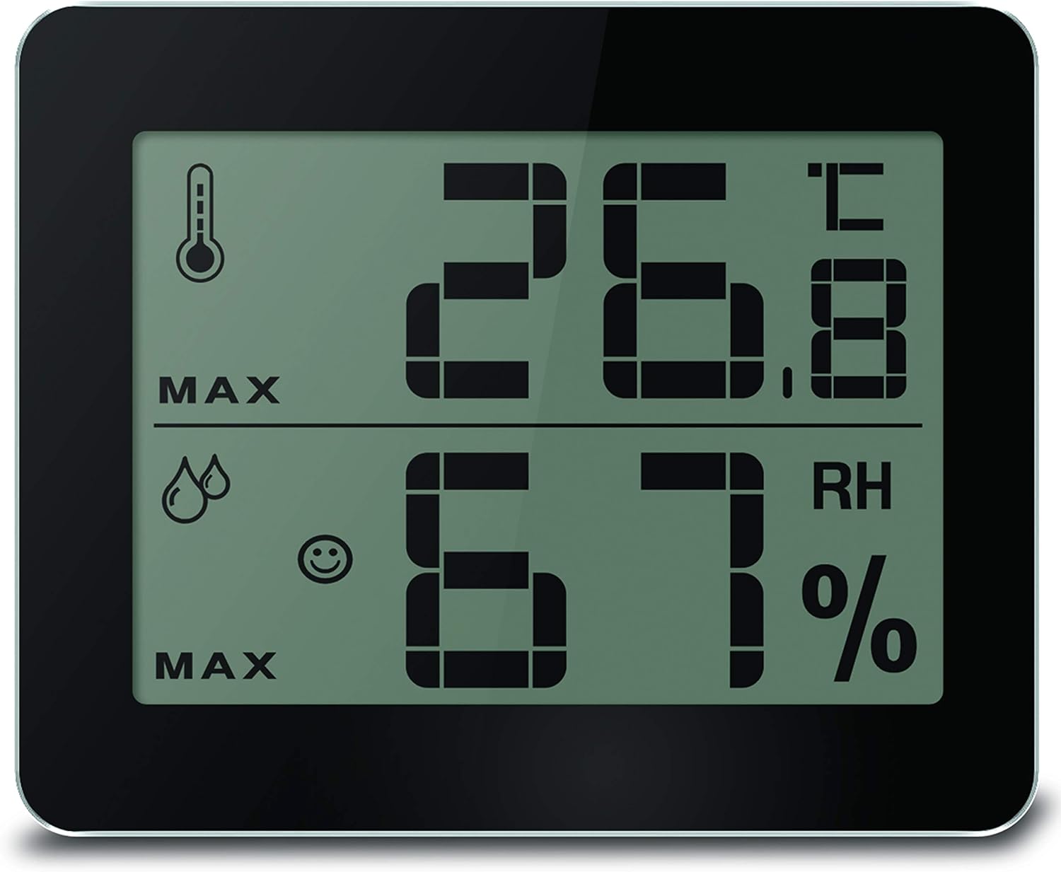 Technoline WS 9450 Hygrometer / Thermometer im Schwarz-Alu Design passt auch in Ihr Zuhause. Es misst die Innentemperatur und die relative Luftfeuchtigkeit und zeigt diese auf dem übersichtlichen Display wieder. Dieses Messgerät zeigt die Minimal- und Maximalwerte der Raumtemperatur und der relativen Luftfeuchtigkeit an. Der Technoline WS 9450 eignet sich zur Wandmontage und Tischaufstellung.