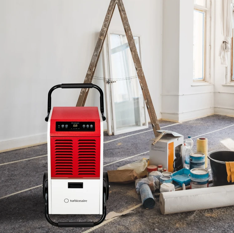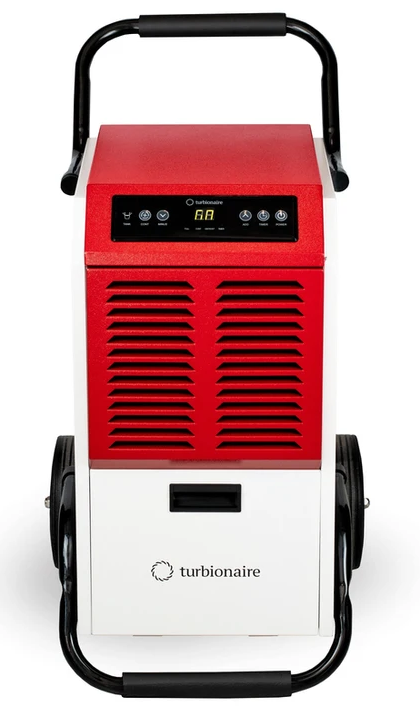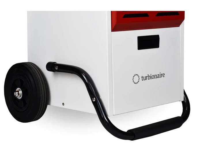 Turbionaire PRO 50N Bautrockner für den Einsatz in anspruchsvollen und/oder professionellen Umgebungen. Mit einer Entfeuchtungsleistung von 51,4 Liter / Tag und einem Luftdurchsatz von 350 m³/h sorgt dieser leistungsstarke professionelle Luftentfeuchter für eine gesunde relative Luftfeuchtigkeit in Bereichen bis zu 250 m². Turbionaire PRO 50N ist ein tragbarer Luftentfeuchter mit robuster Konstruktion und stabilem Gehäuse, der auch unter schwierigen Bedingungen zuverlässig trocknet. Das Kondenswasser (der Luft entzogene Feuchtigkeit) wird entweder im abnehmbaren Wassertank gesammelt oder direkt über einen Ablaufschlauch abgeleitet. Der Profi bei zu feuchter Luft oder zur Beseitigung von Wasserschäden in Lagerhallen, auf Baustellen, in Fabriken, Kellern, Bibliotheken oder Museen.