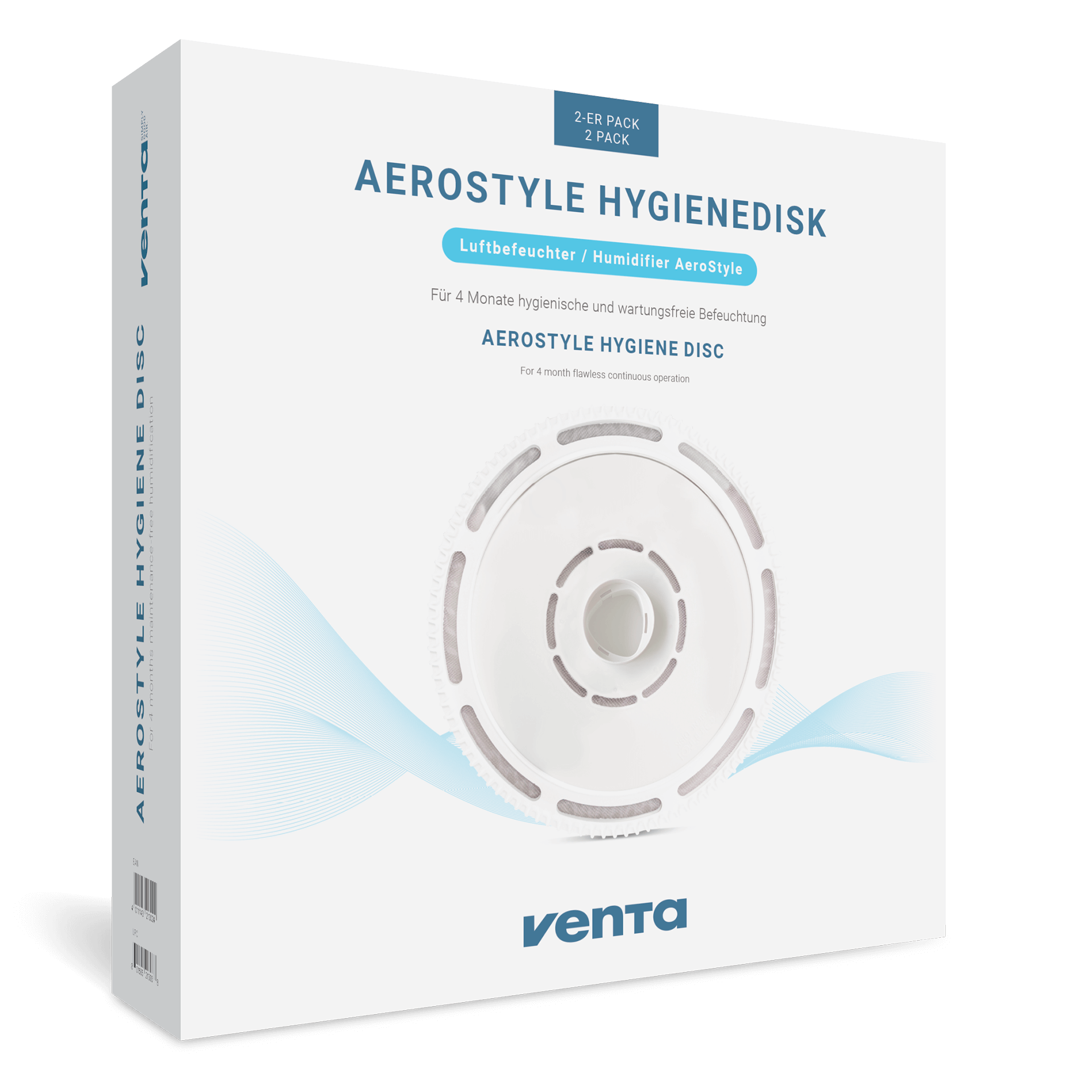 Venta Hygienedisk AeroStyle (2-er Set) Venta Hygienedisk AeroStyle im 2er-Pack ist ein unverzichtbares Zubehör und geeignet für folgende Venta Modelle: Venta LW73 Luftbefeuchter / Luftwäscher Venta LW74 Luftbefeuchter / Luftwäscher Dieses Ersatzteil minimiert den Reinigungsaufwand, verhindert Kalkablagerungen und sorgt für eine optimale, hygienische Luftbefeuchtung, ganz ohne chemische Zusätze. Einzigartig und effektiv: die patentierte Kombination aus 3D-Plattenstapel und Hygienedisk von Venta - für eine nahezu wartungsfreien Betrieb