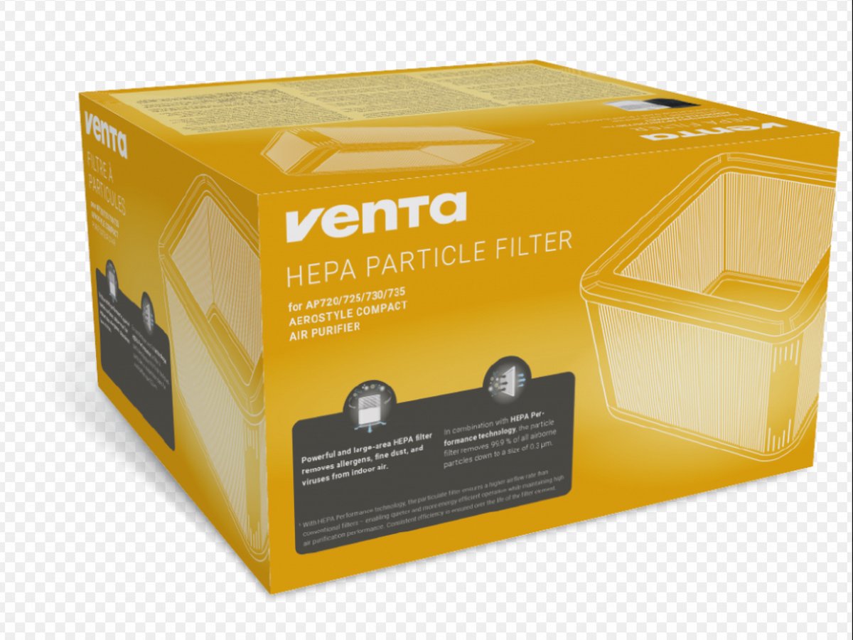 Venta Ersatzfilter-Set (AW730/AW735) (2 Stück) Venta Ersatzfilter-Set besteht aus 2 Ersatzfilter für Ihren: Venta AW730 Luftreiniger / Luftbefeuchter Venta AW735 Luftreiniger / Luftbefeuchter Das mehrstufige Filtersystem sorgt mit drei integrierten, perfekt aufeinander abgestimmten Filtern für eine konstant hohe Luftreinigungsleistung. Für beste Luftqualität in Ihrem Zuhause. Der Grobstaubfilter mit seiner besonders großen Filterfläche sorgt für eine hohe Luftreinigungsleistung. Mit diesem Filter werden vor allem grobe Schmutzpartikel wie Hausstaub oder Tierhaare aus der Luft gefiltert. Mit dem HEPA H13-Filter, der auch in Operationssälen eingesetzt wird, werden kleinste Partikel wie Bakterien und Viren, Allergene und Aerosole aus der Luft gefiltert. Der Aktivkohlefilter sorgt in Kombination mit den beiden anderen Filtern für die Beseitigung von Feinstaub, Pollen, schädlichen Gasen und unangenehmen Gerüchen. Merkmale: Lieferumfang: 2 x 3-fach-Filter 3-fach-Filter: Grobstaubfilter, HEPA H-13 Filter und Aktivkohlefilter Filtereffizienz von 99,97 % 99,97 % Filterung von z. B. Feinstaub, Viren, Pollen & Formaldehydgasen bis zu einer Größe von 0,3 µm Lebensdauer: 12 Monate Tipp vom Hersteller: Wechseln Sie den Filter alle 12 Monate, damit Ihr Gerät eine konstant zuverlässige Luftreinigungsleistung erbringt.