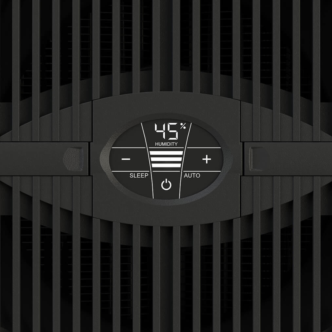 Dieser hygienische Kaltverdunster ist einfach zu bedienen und zu warten. Über das Touch-Display an der Oberseite können Sie das Gerät per Fingertipp ein- und ausgeschalten und die beiden Modi AUTO und SLEEP wählen. Die 3 Leistungsstufen lassen sich mit den Symbolen "+ / -" steuern. Der Nacht(Sleep)-Modus verfügt über eine gedimmte Displaybeleuchtung und eine flüsterleise Leistungsstufe. Im Automatikmodus wird die Leistungsstufe je nach Luftfeuchtigkeit automatisch angepasst. Die Luftfeuchtigkeit wird durch den eingebauten Hygrostaten in Echtzeit angezeigt und gesteuert.