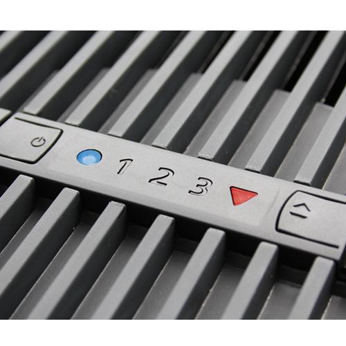 Das Bedienfeld mit der Ein-/Ausschalt-Taste sowie den drei Leistungsstufen-Tasten ermöglicht eine kinderleichte Bedienung. Im Falle eines geringen Wasserstands wird dies durch eine LED-Statusanzeige angezeigt. Weitere Vorteile sind eine einfache und unkomplizierte Wartung und der geringe Stromverbrauch mit weniger als 8 Watt.